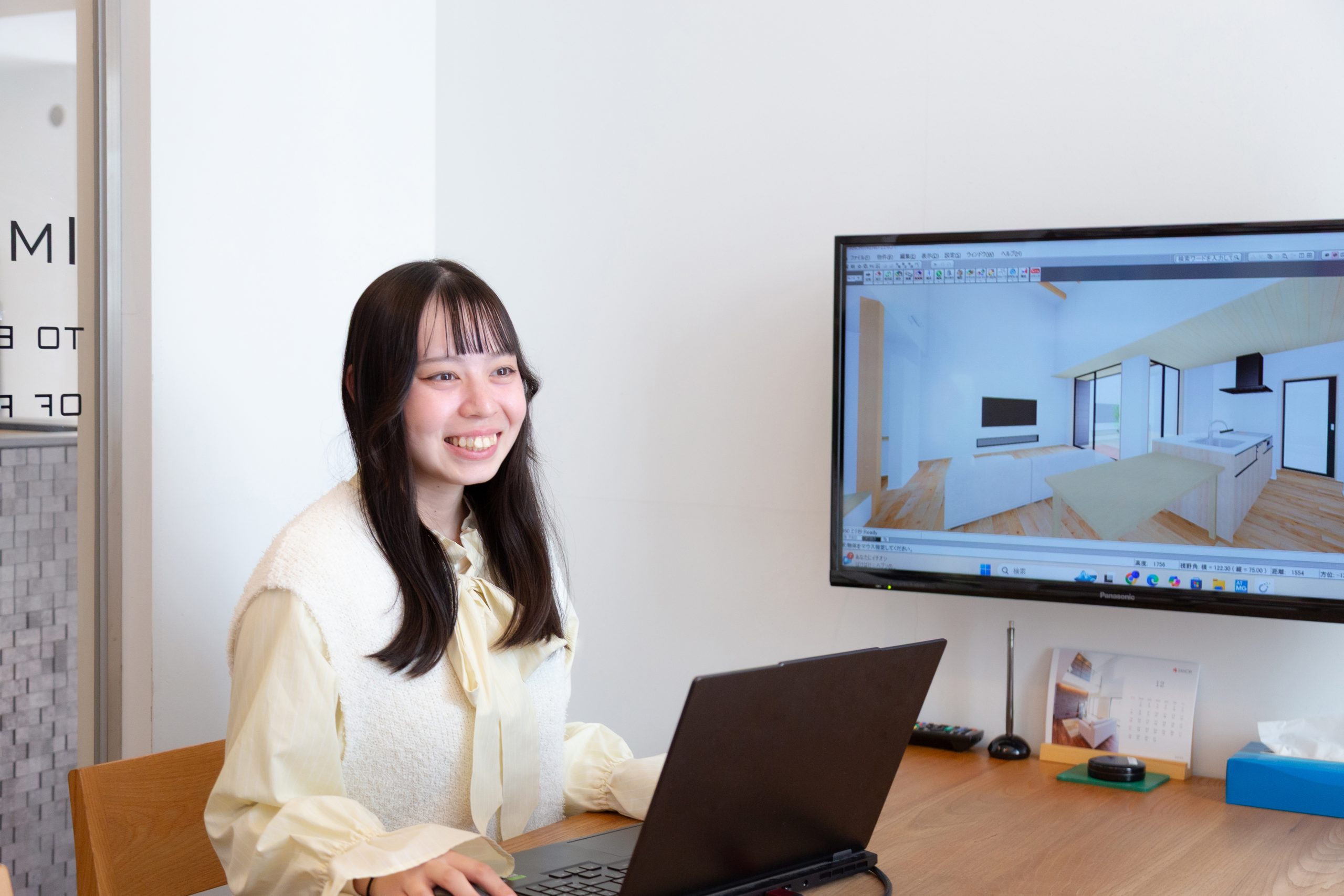 私が仕事で大切にしていることは、人を大切にすることです。入社1年目なので、仕事で覚えたいこと、学びたいこともたくさんありますが、まずは新しい環境に馴染むことから励んでいます。相手の目を見て挨拶したり、小さなことでも何かしていただいた時はお礼を言ったり、慣れてくると気づかないうちに疎かになってしまう“当たり前“を丁寧にするように心がけています。お客様との打合せは緊張で表情が硬くなってしまうことが課題ですが、話を聞きながら相槌を打って笑顔でいるところから努めています。まだまだ未熟者ではありますが、楽しみながらお家づくりのサポートができたらいいなと思っておりますのでよろしくお願いいたします!