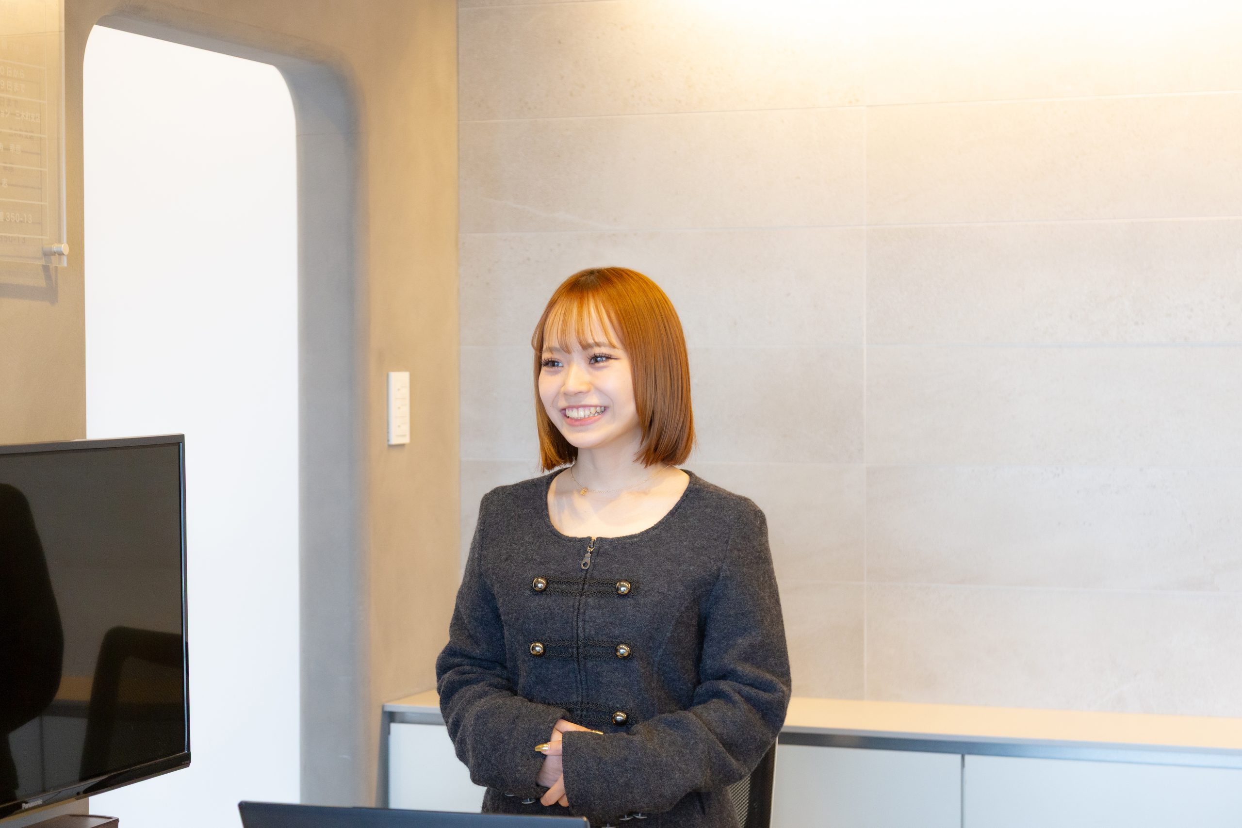 三木町スタジオでは【けやき通り不動産】として、不動産事業を行っています。私は主に受付業務を担当しています。来店されたお客様のご案内や電話対応を行い、スムーズにお客様を担当者へ引き継げるよう心がけています。また、物件データの取り込みや物件登録などの事務作業も担当しており、物件登録は、最新の情報を正確に反映させるため、物件データを丁寧に入力・確認する作業を行っています。物件情報の入力などがほとんどですが経理業務も少し行っています。