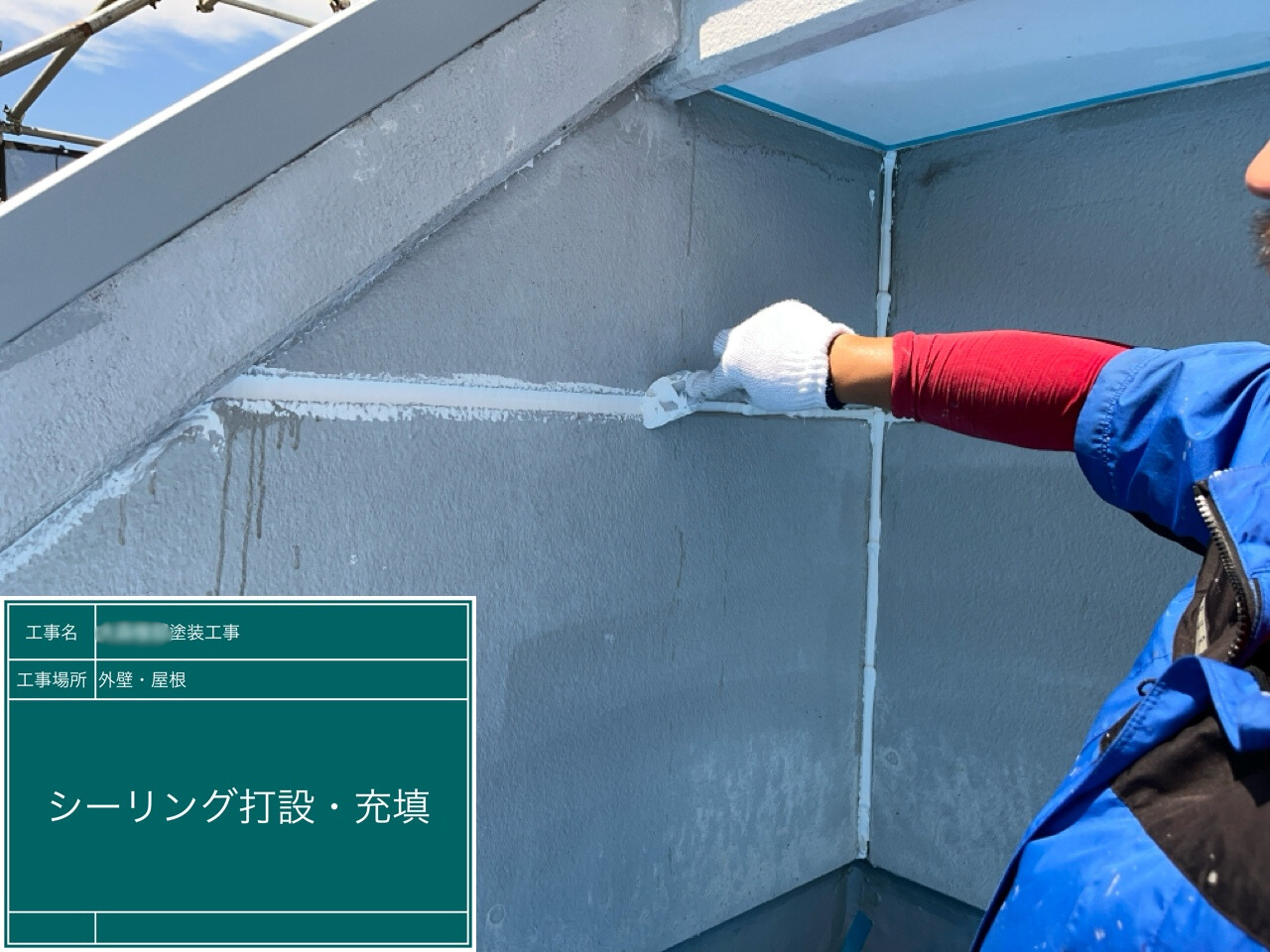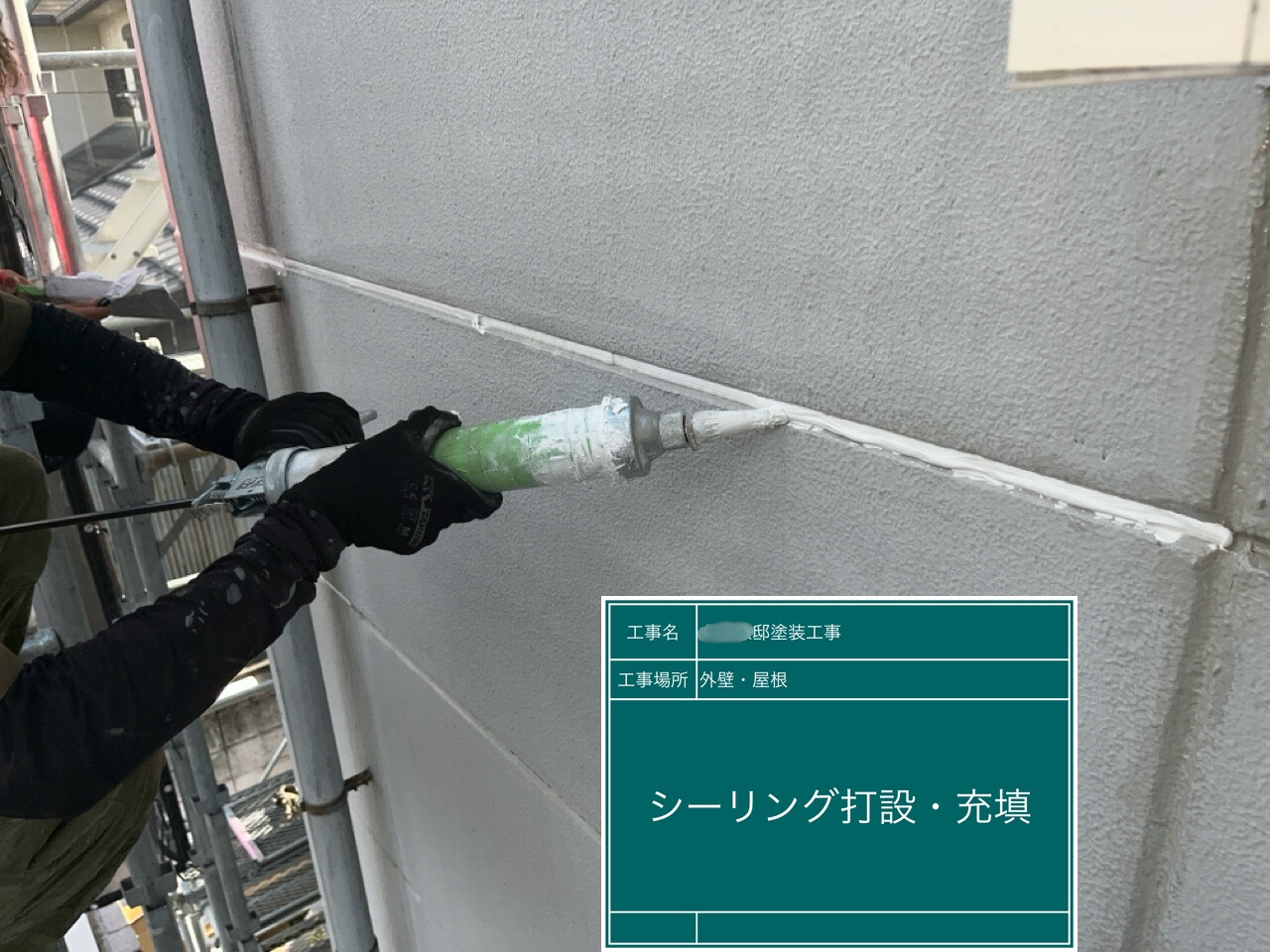 新しいシーリング材を充填しています。建物を雨水や隙間からしっかり守ります。