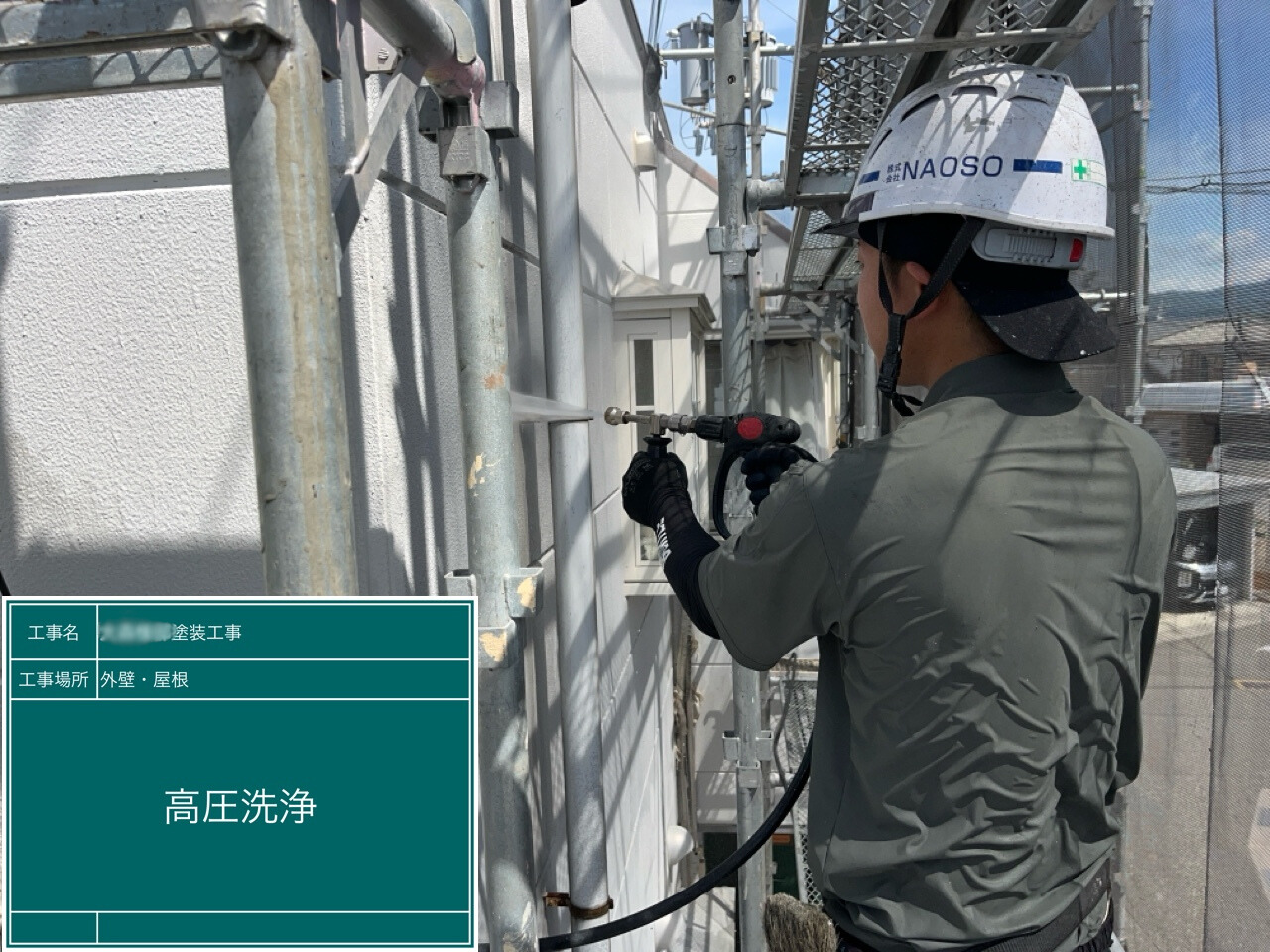 外壁や屋根の汚れを高圧洗浄で丁寧に除去します。下地を整え、塗装の仕上がりをより美しく保ちます。