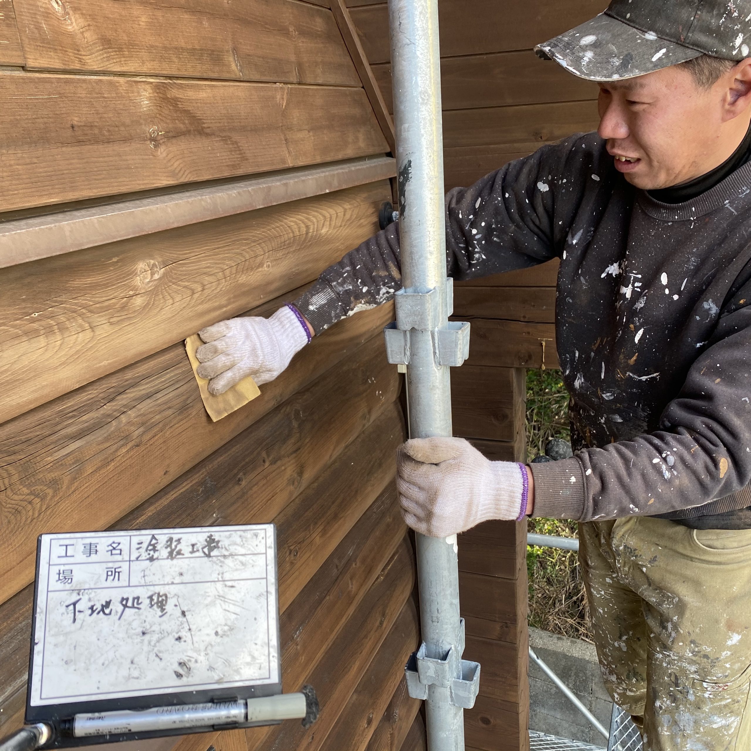 広い面積の研磨作業でしたが、塗料がしっかりとのるように丁寧に仕上げています。