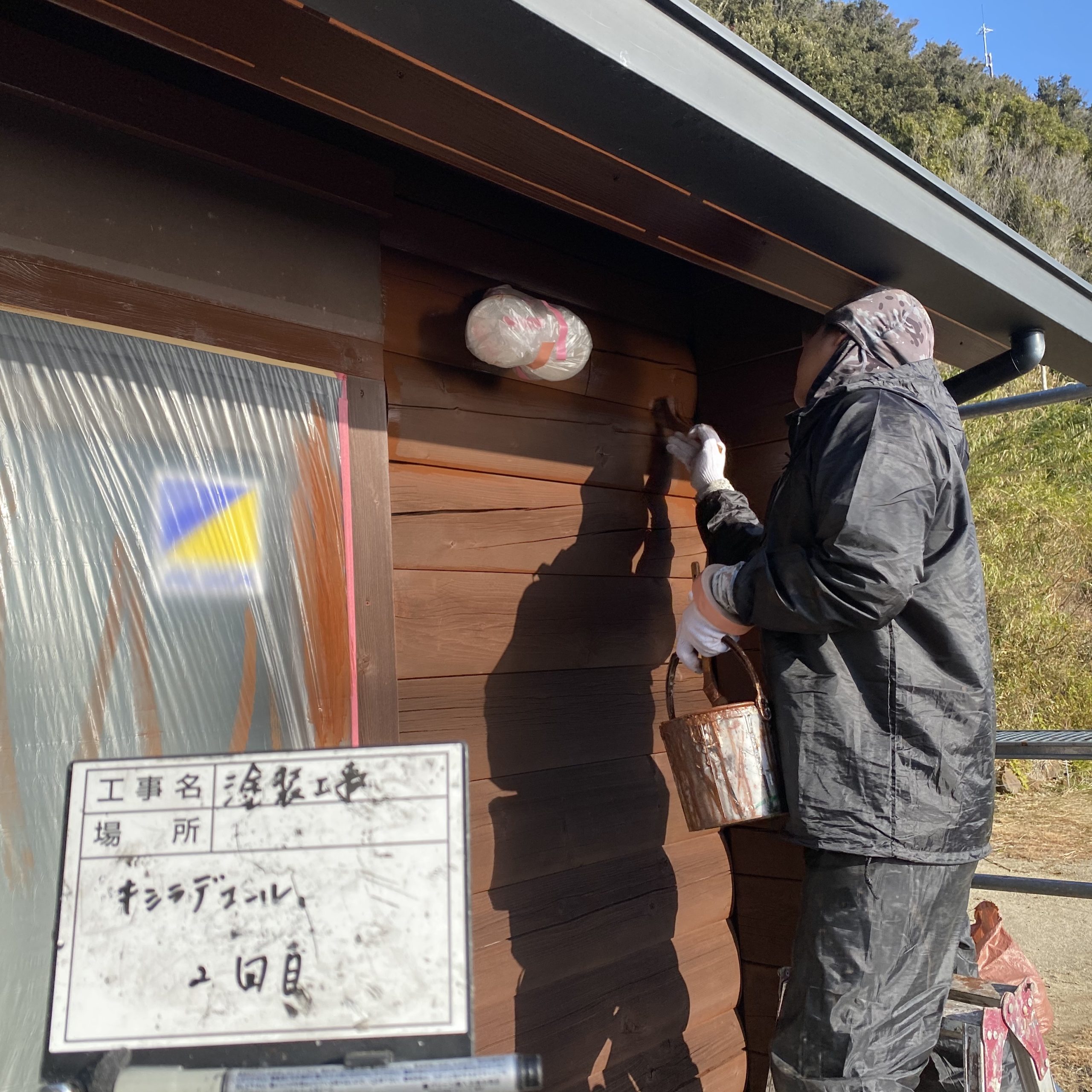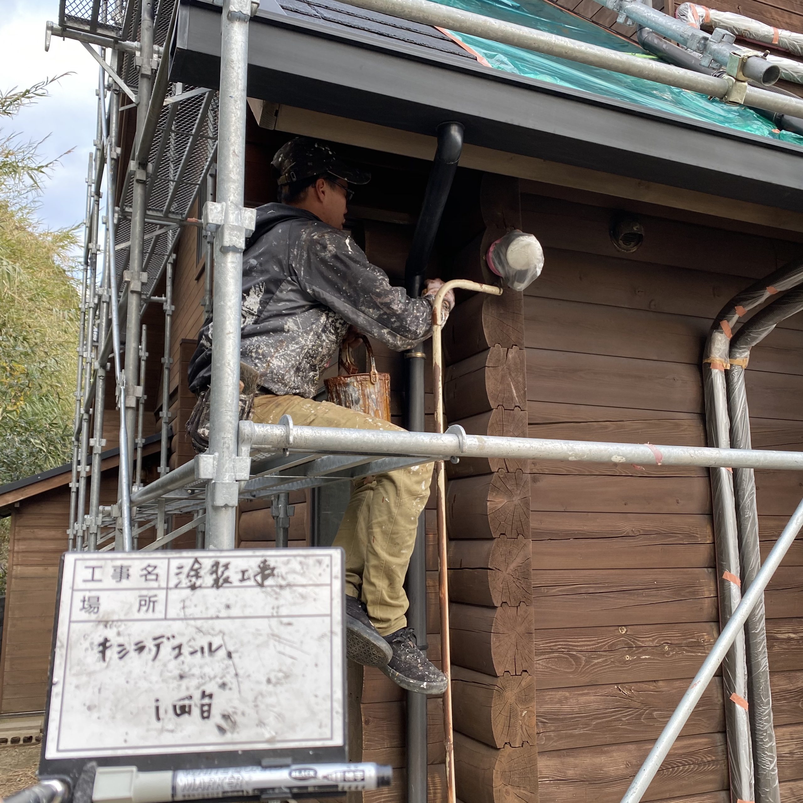 海沿いに建つ素敵なログハウスの塗装工事をご依頼いただきました。