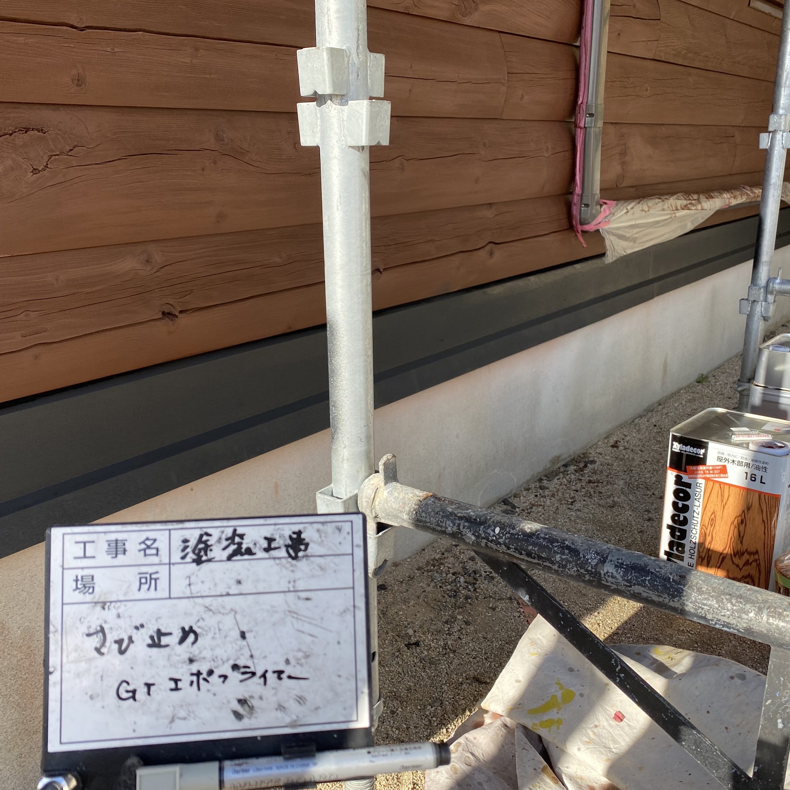 付帯部の鉄部に錆止めをしっかり塗布しています。