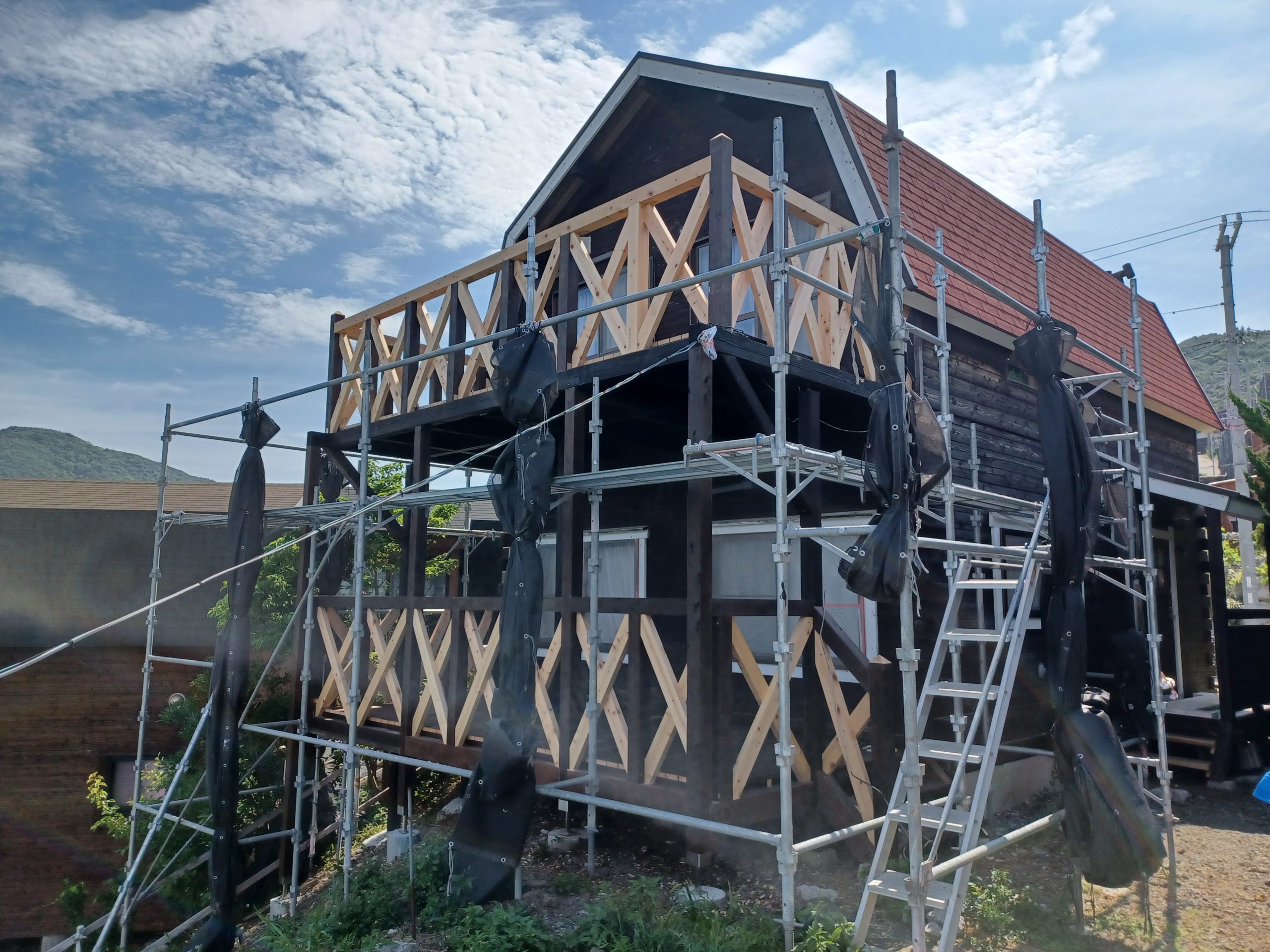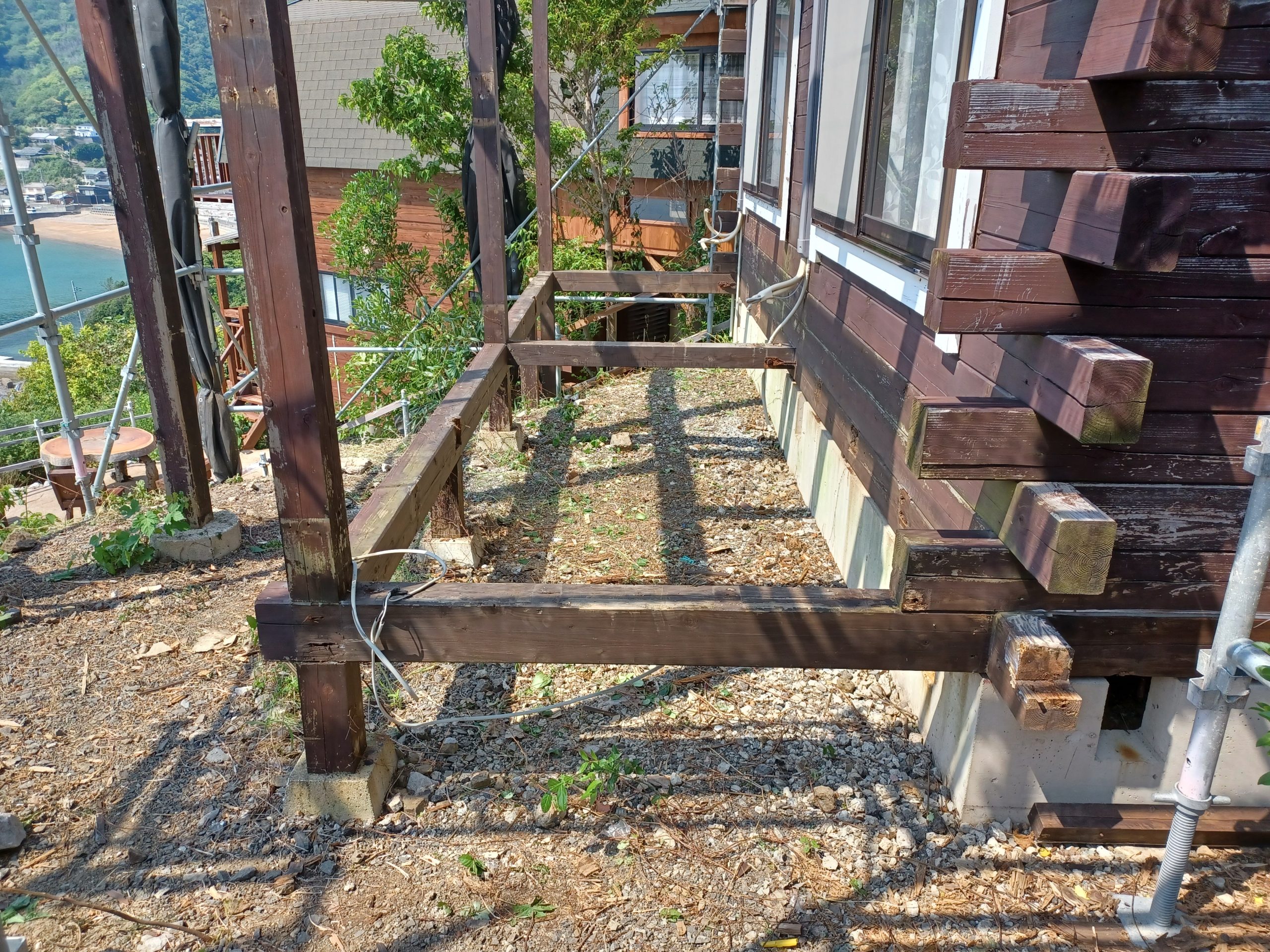デッキ・テラスの束がのる部分を新規で増設し、安定性を確保しました。
