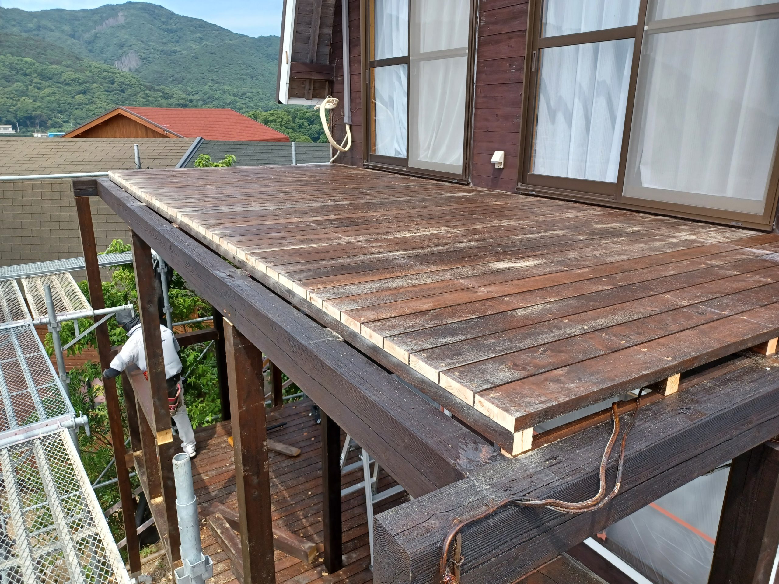 これにより、今後のデッキやテラスの耐久性を高め、安全性を確保しています。