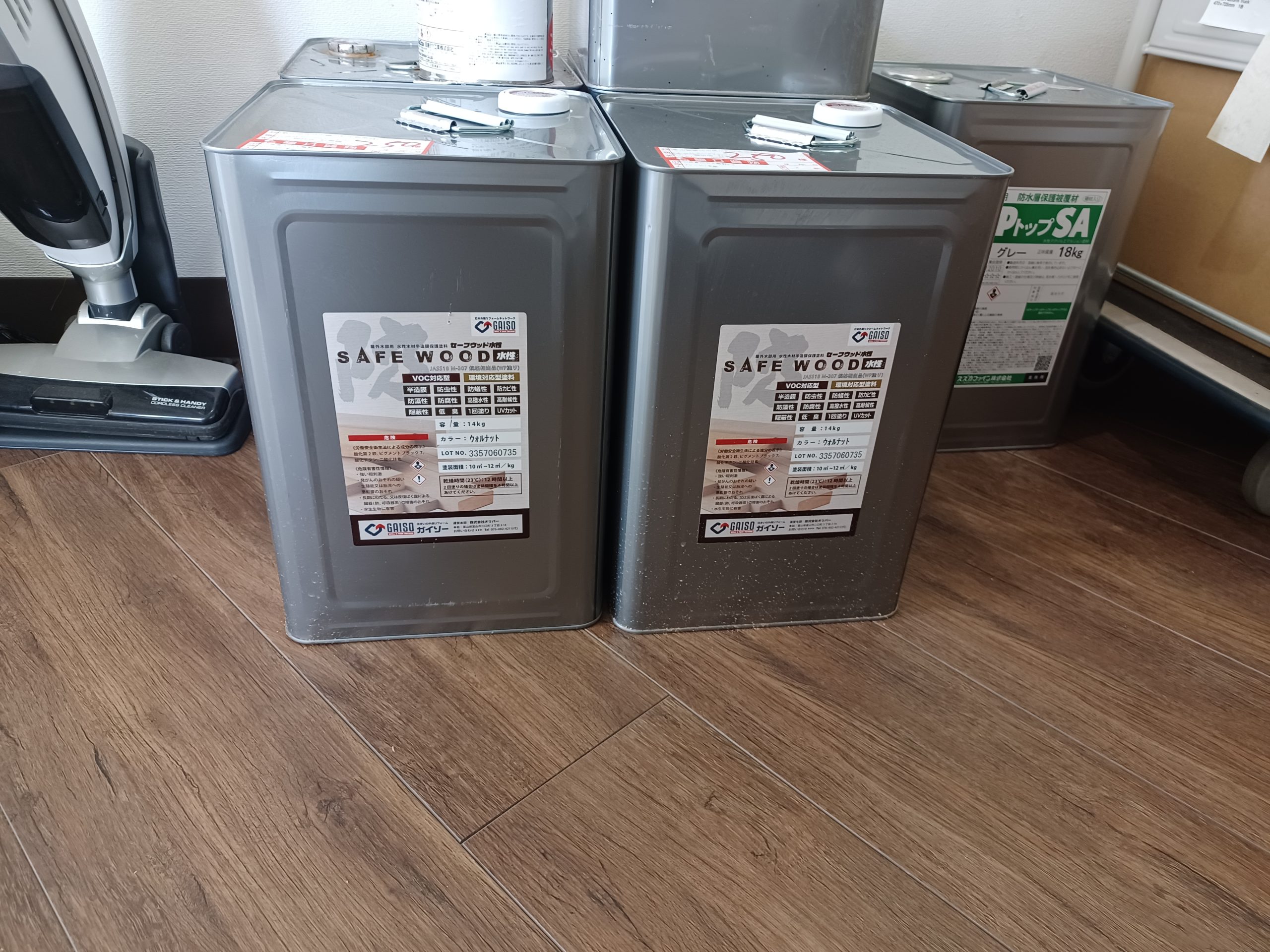 塗装には セーフウッド を使用。紫外線や風雨に強い微粒子顔料を採用しているため、浸透性や色の定着性に優れた塗料です。