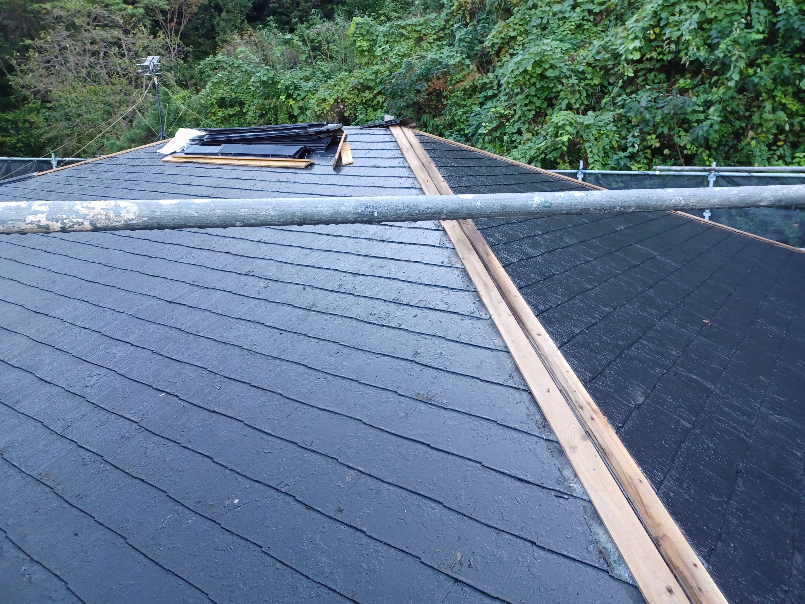 このあと樹脂製の桟木を取り付け、板金で覆えば施工完了間近です。