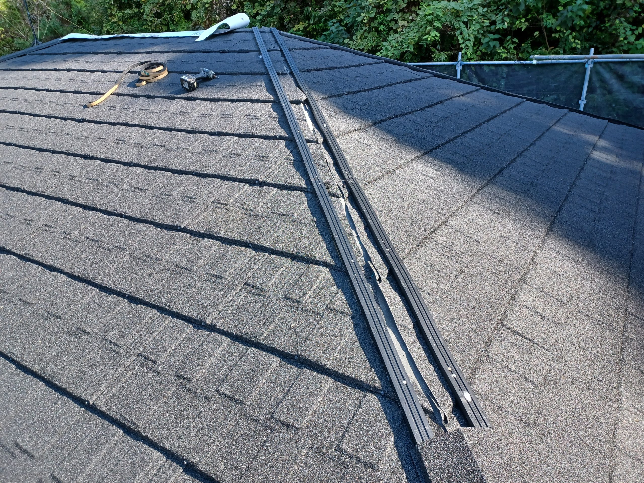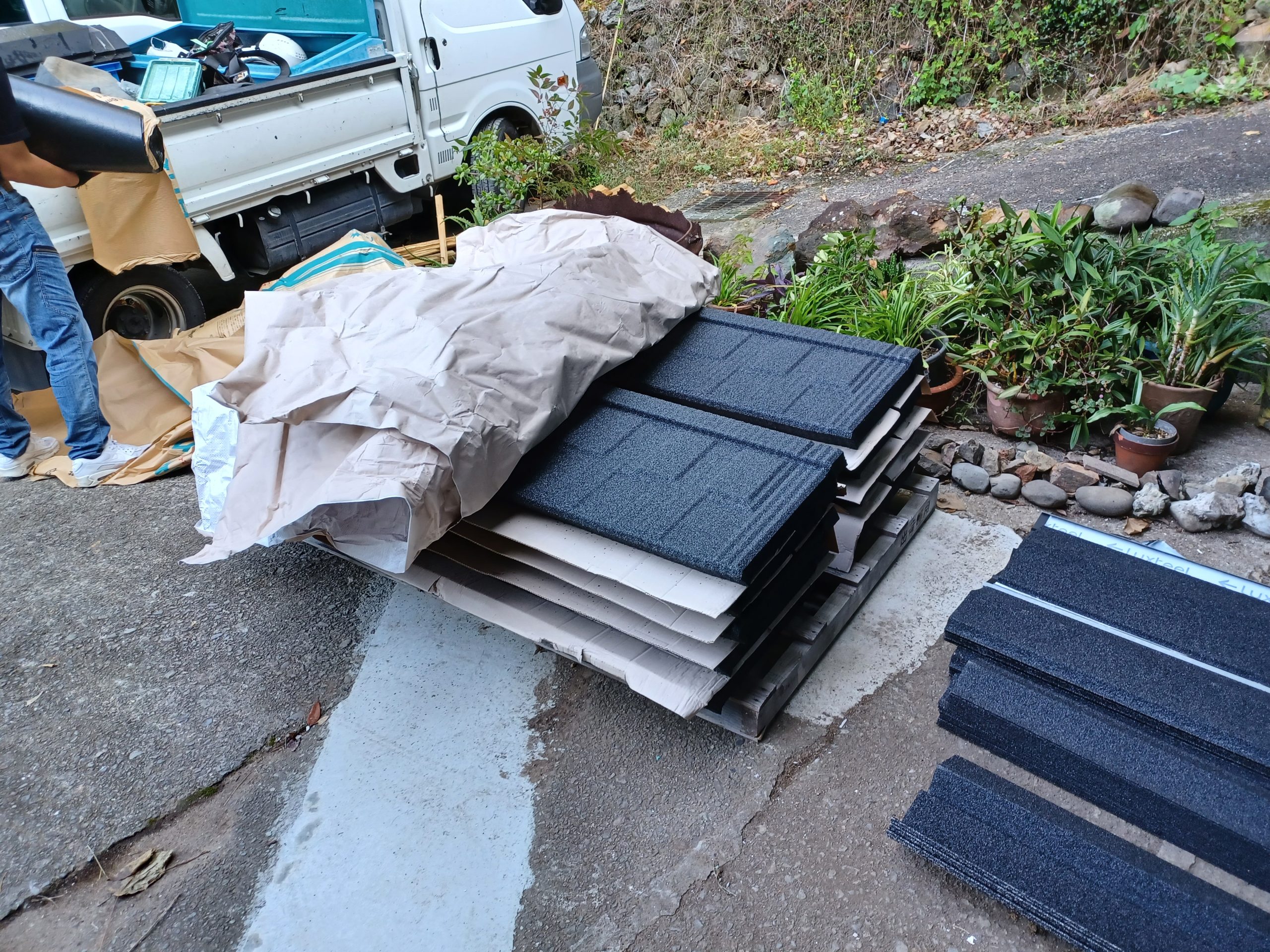 カバー工法のため、既存の屋根材は残したまま、棟板金や桟木などを丁寧に取り外していきます。