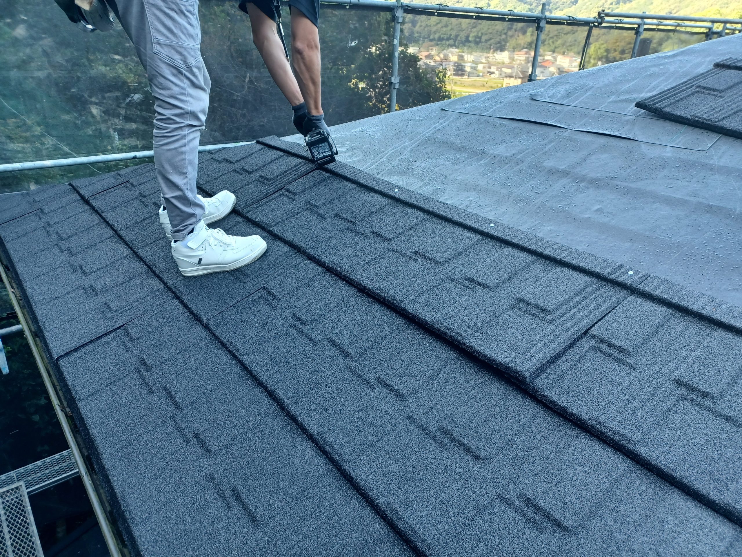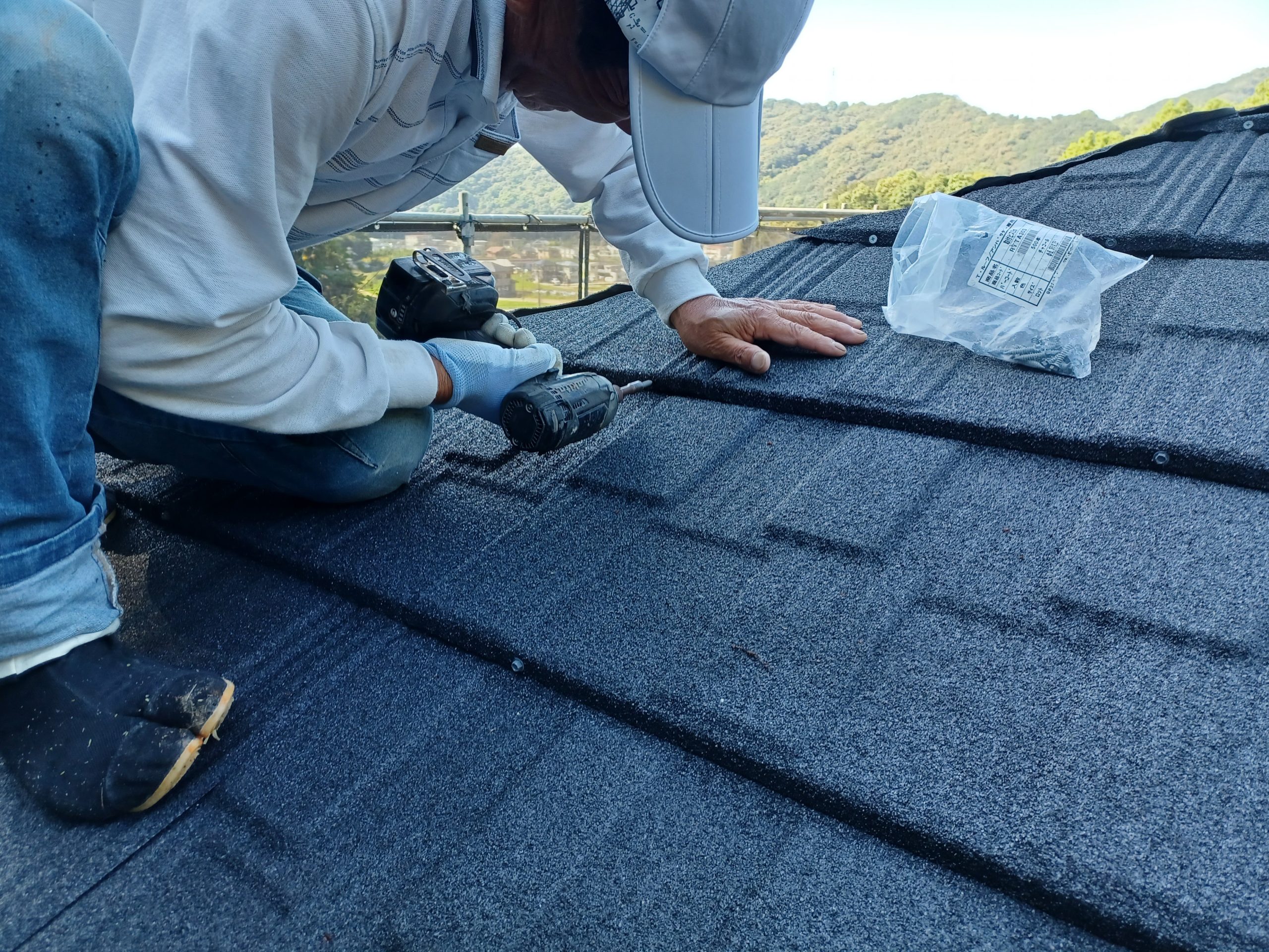 一枚ずつ丁寧に重ね合わせながら、確実に固定していきます。