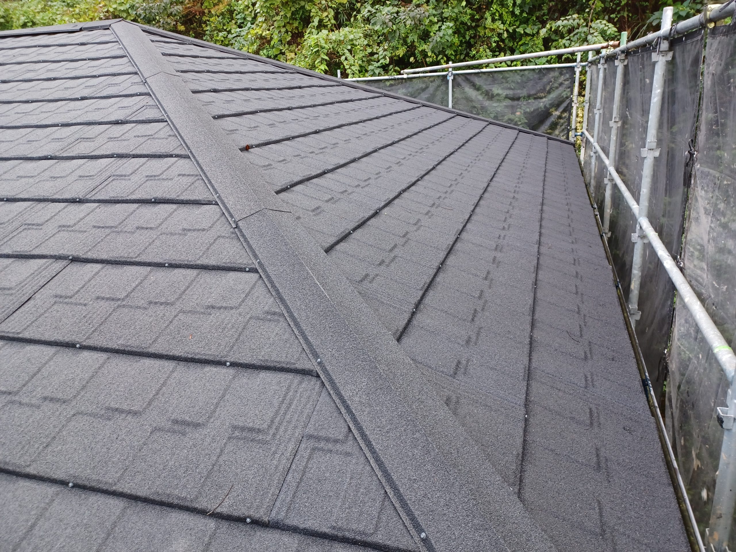 使用した屋根材は、リクシルの「T・ルーフ モダンN」。
