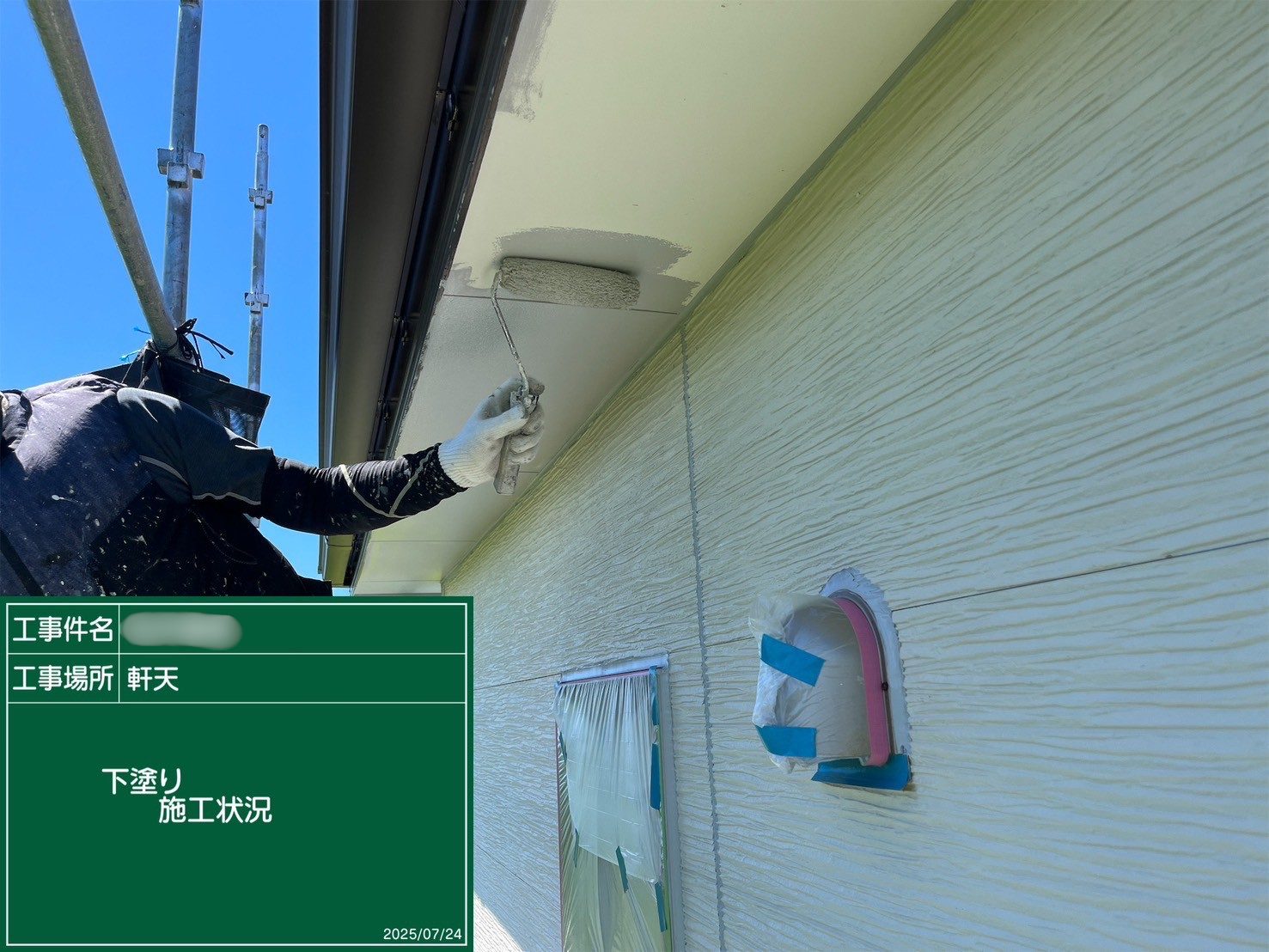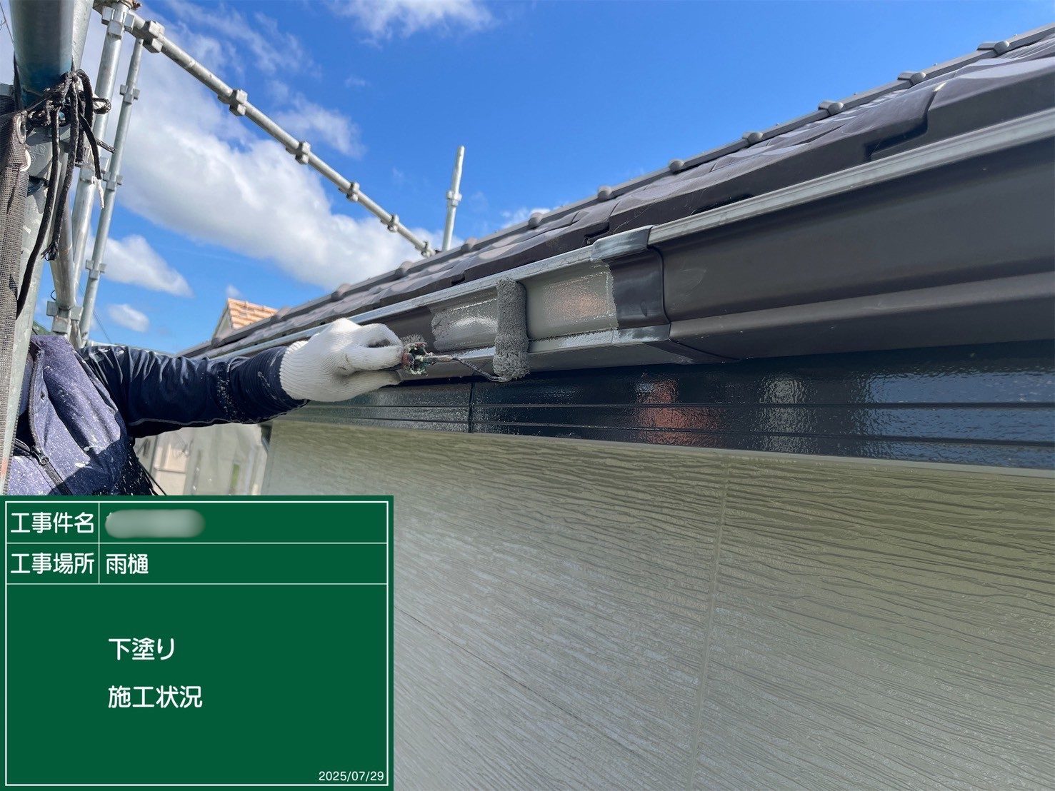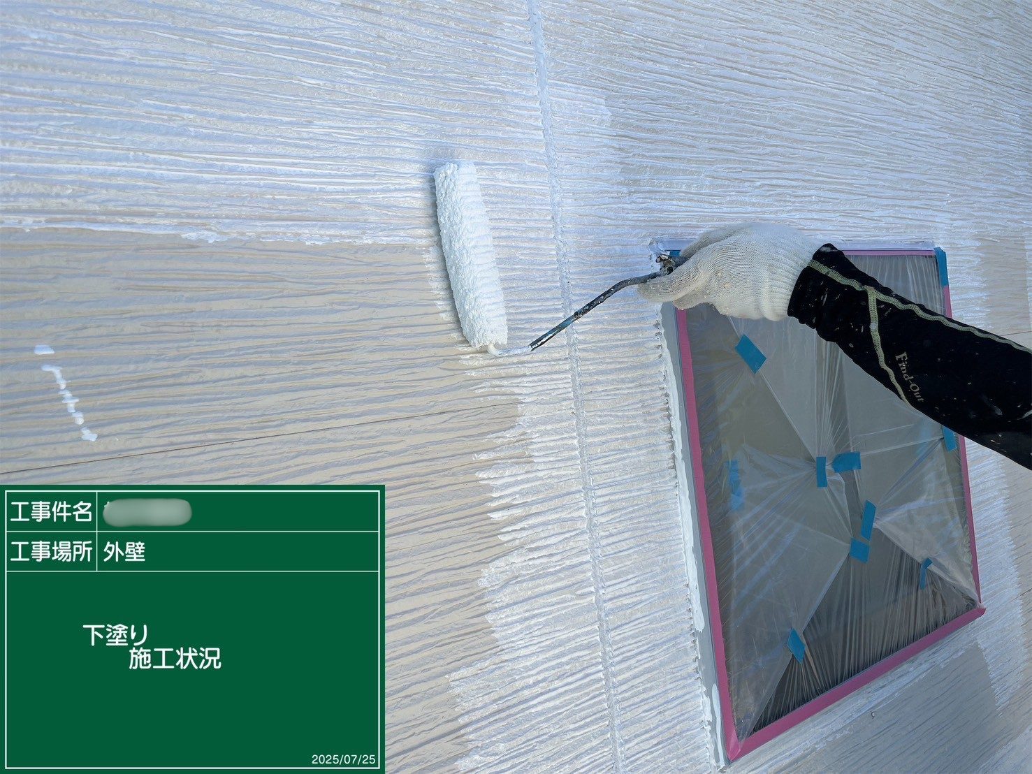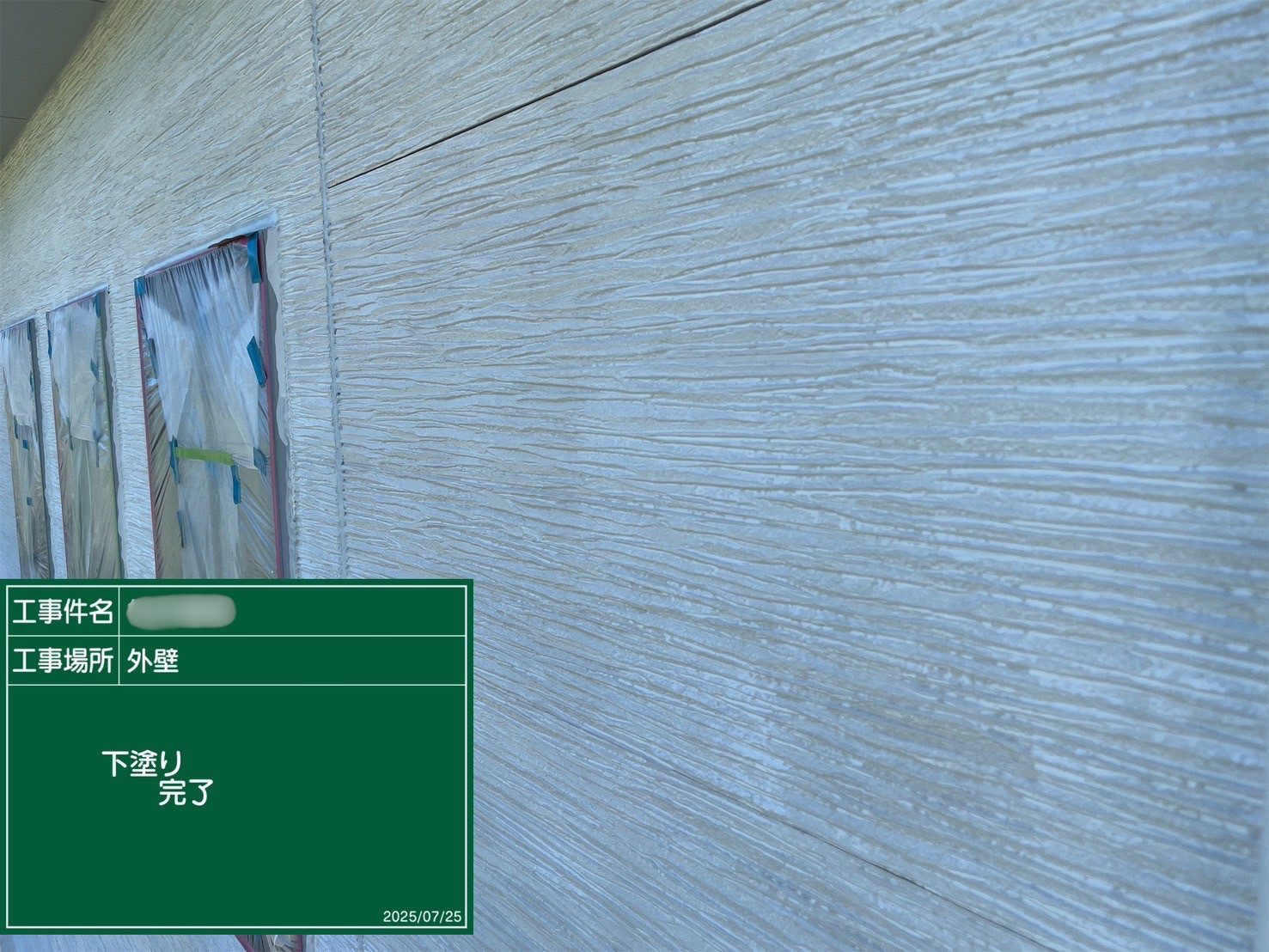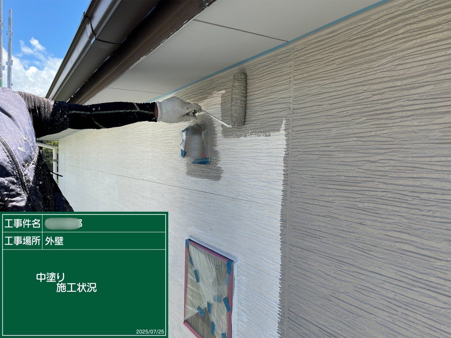 塗装のベースを作るため、外壁に中塗りを行いました。