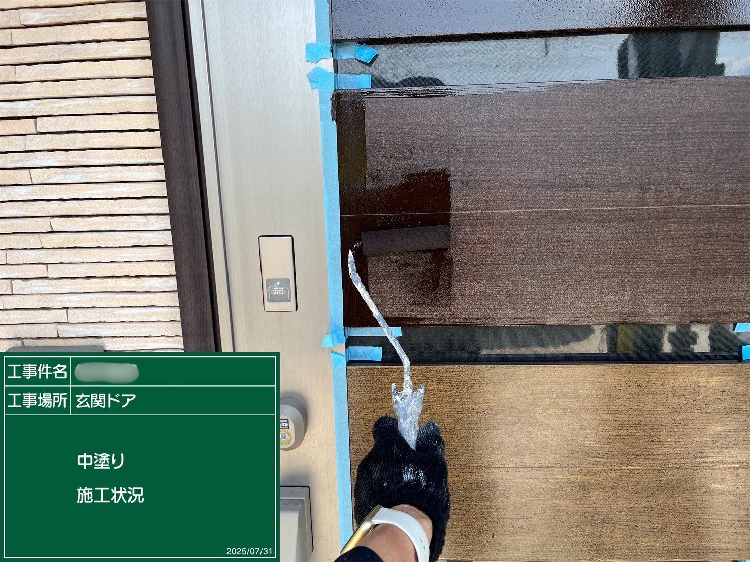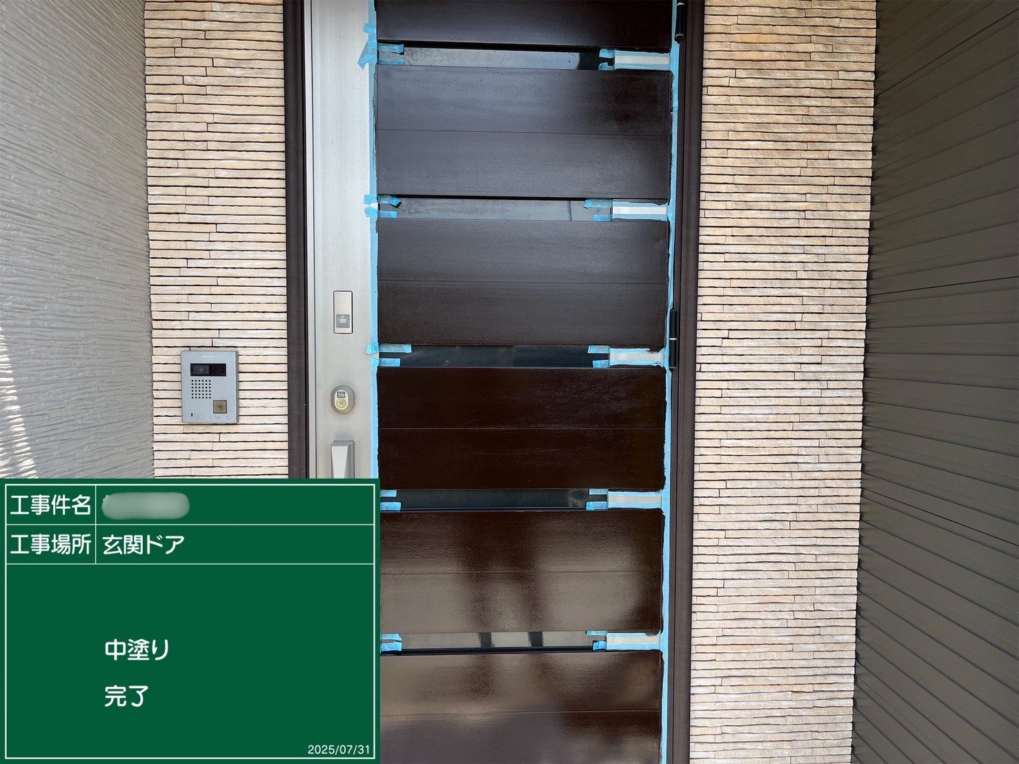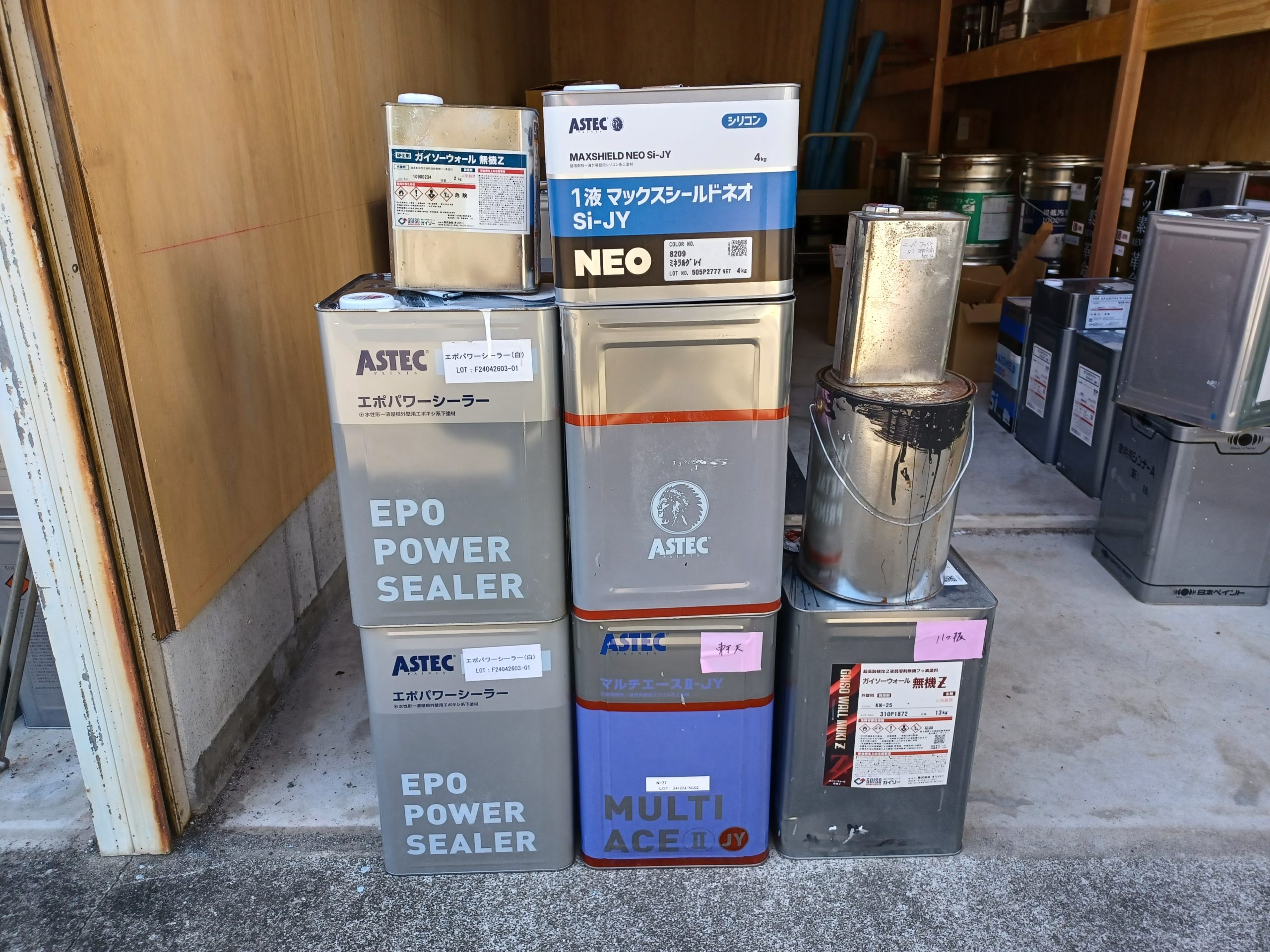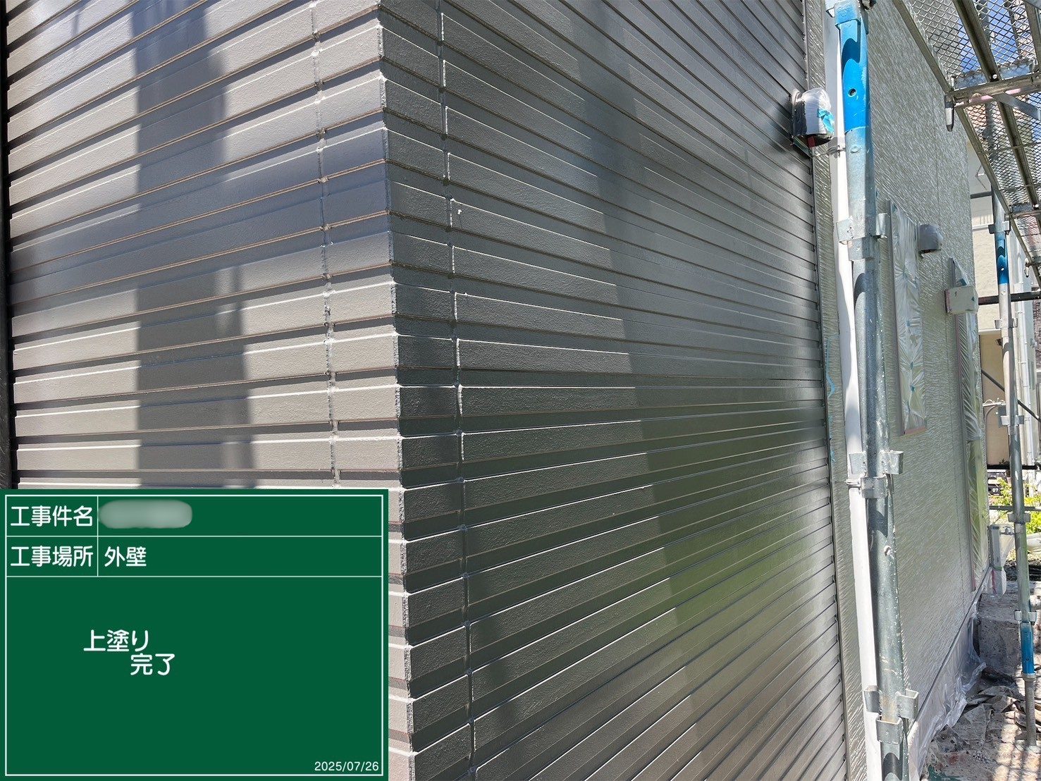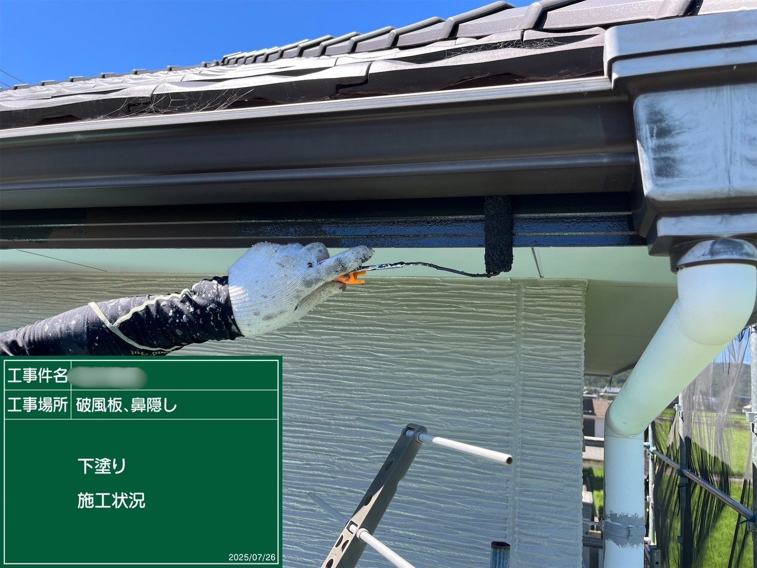 塗装のベースを作るため、外壁に中塗りを行いました。