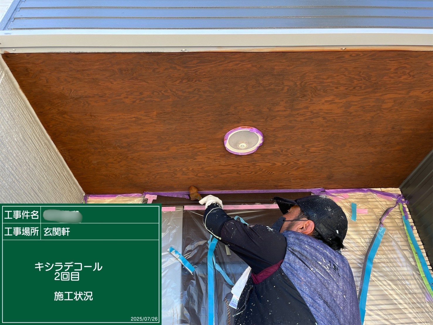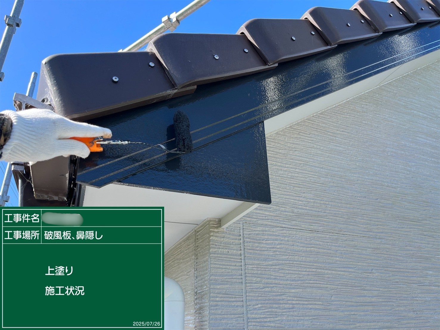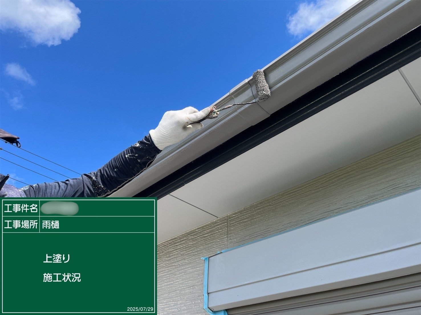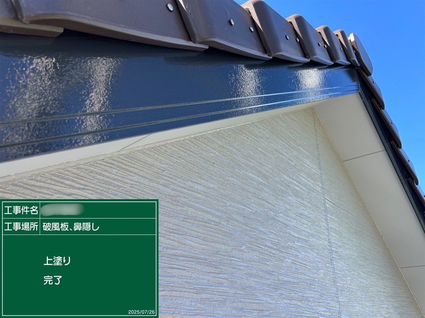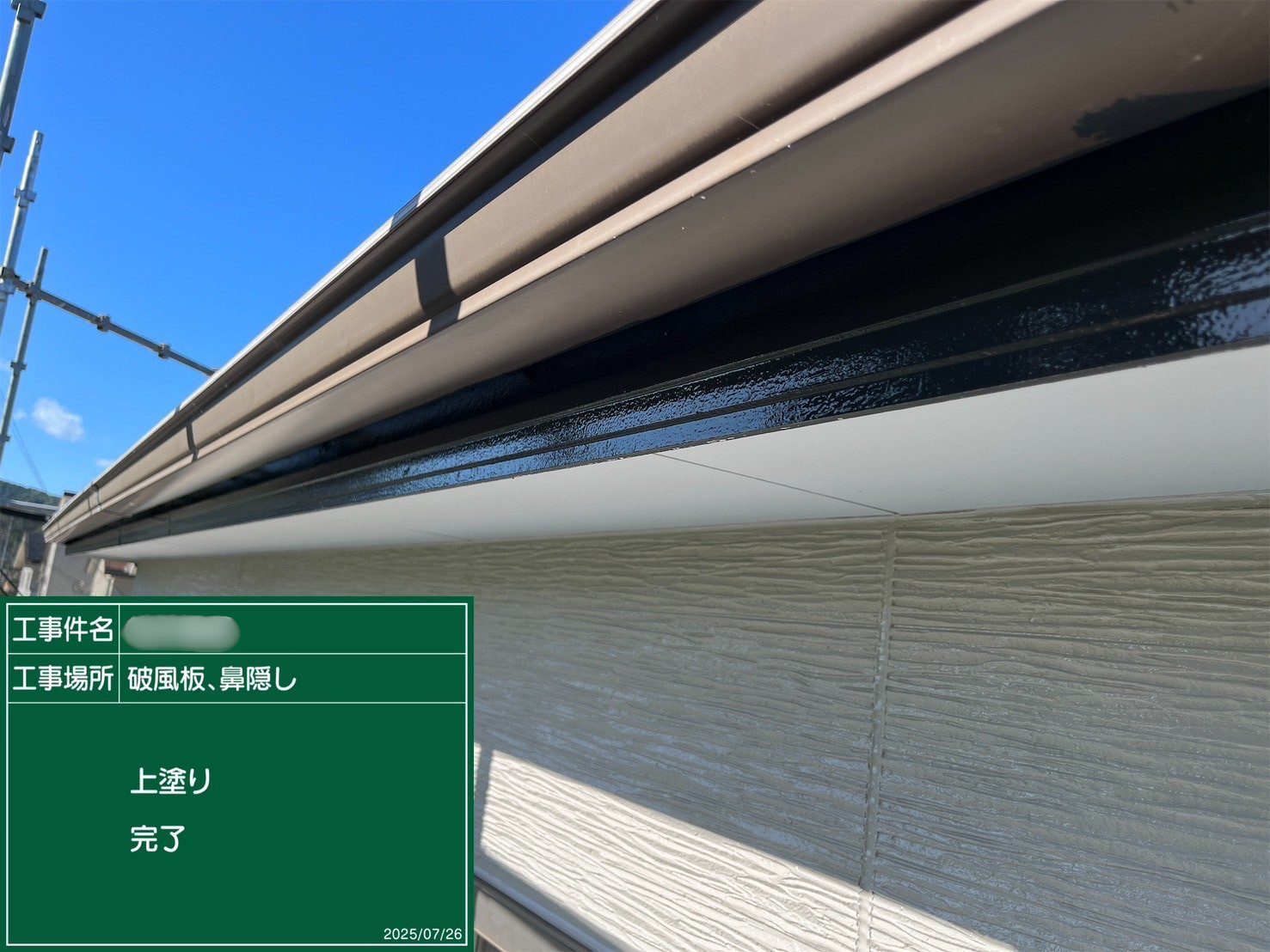 仕上げとして上塗りを行い、ツートンカラーの外観を完成させました。