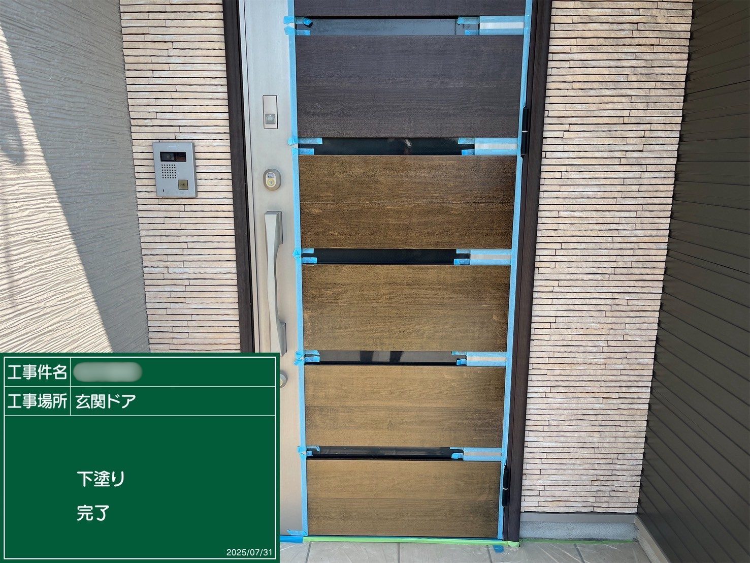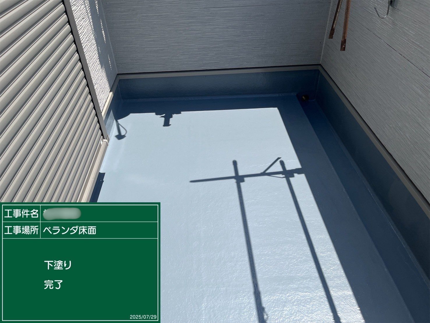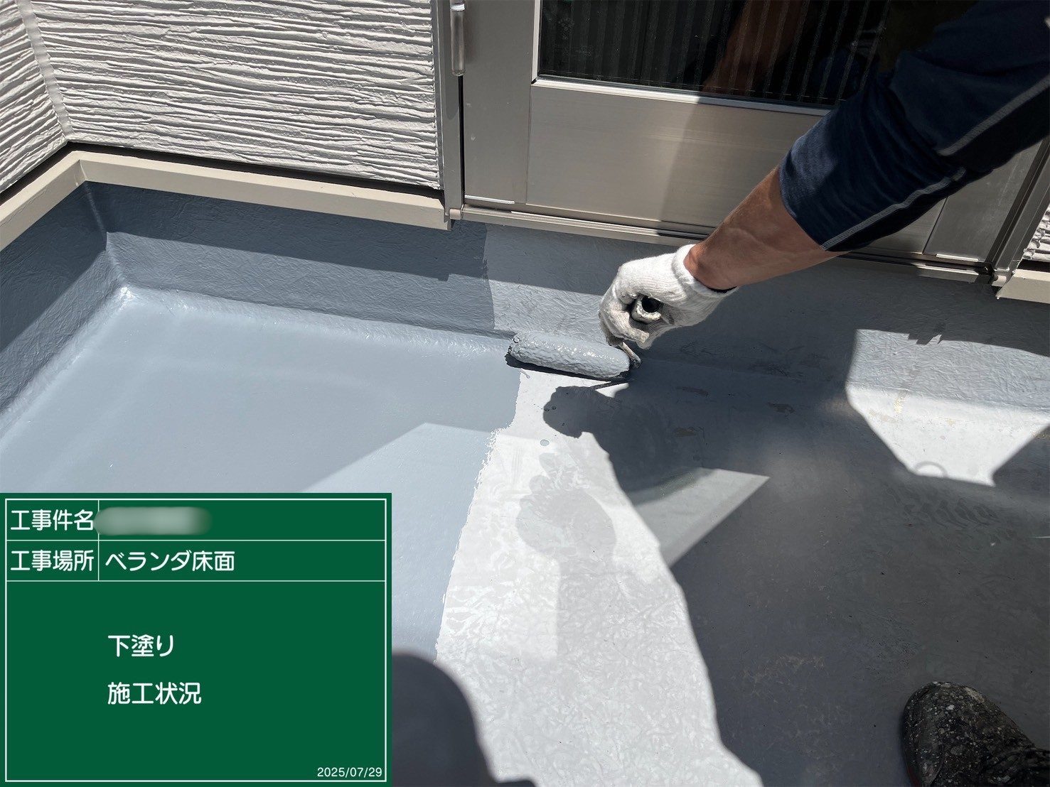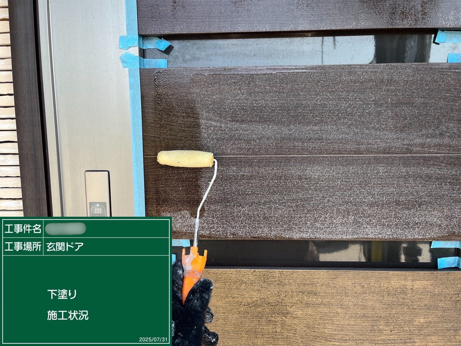 周囲を保護する養生と下地のプライマー塗布を行いました。