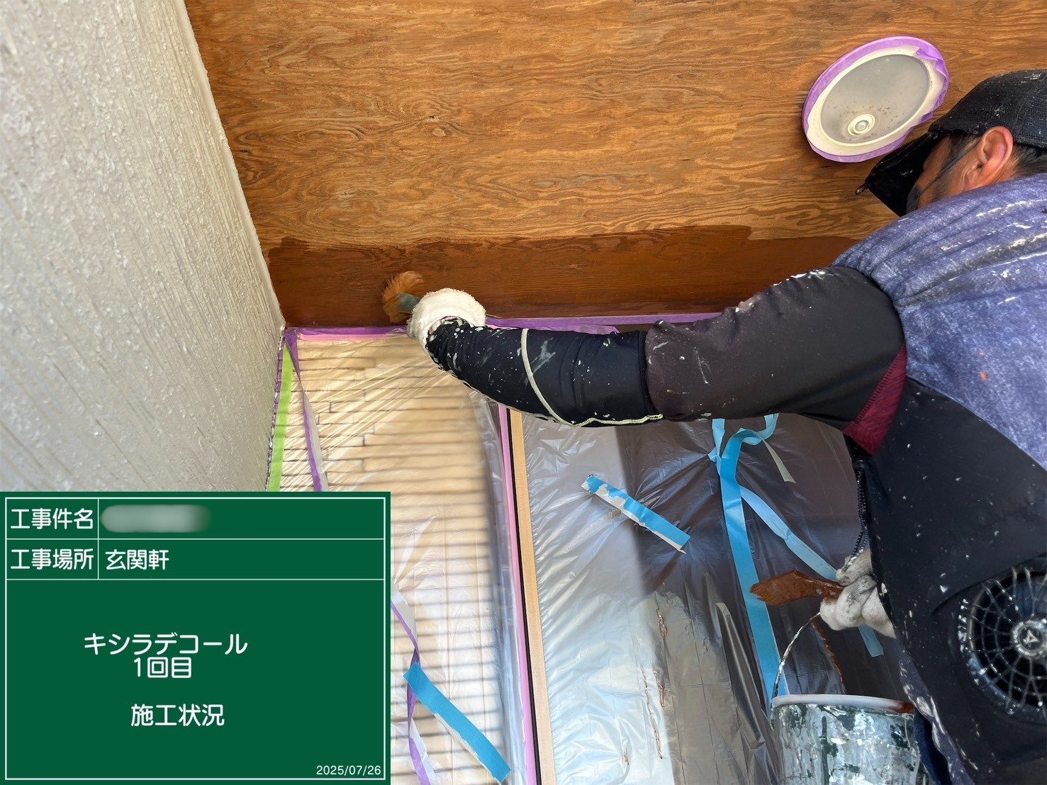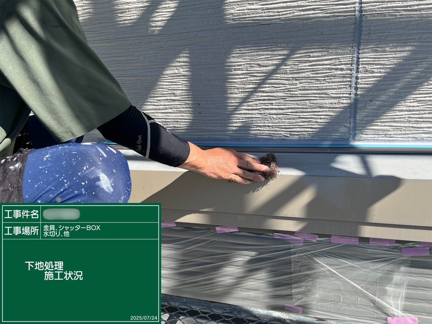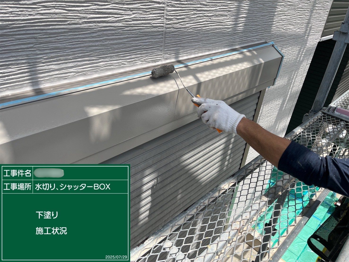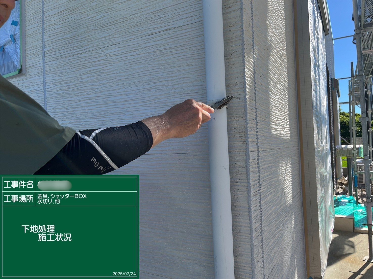周囲を保護する養生と下地のプライマー塗布を行いました。