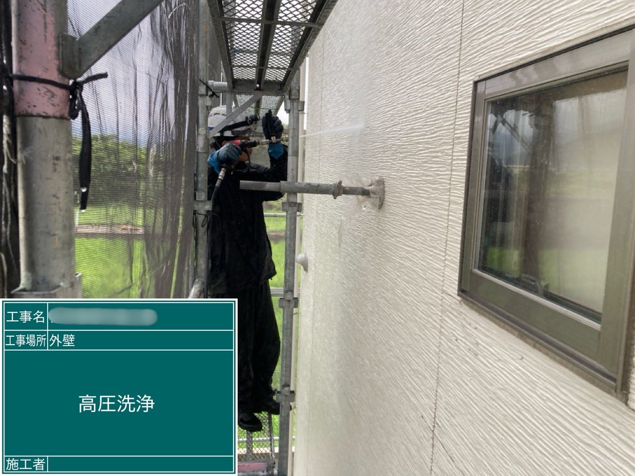 外壁の汚れや古い塗膜をしっかり洗い流しました。