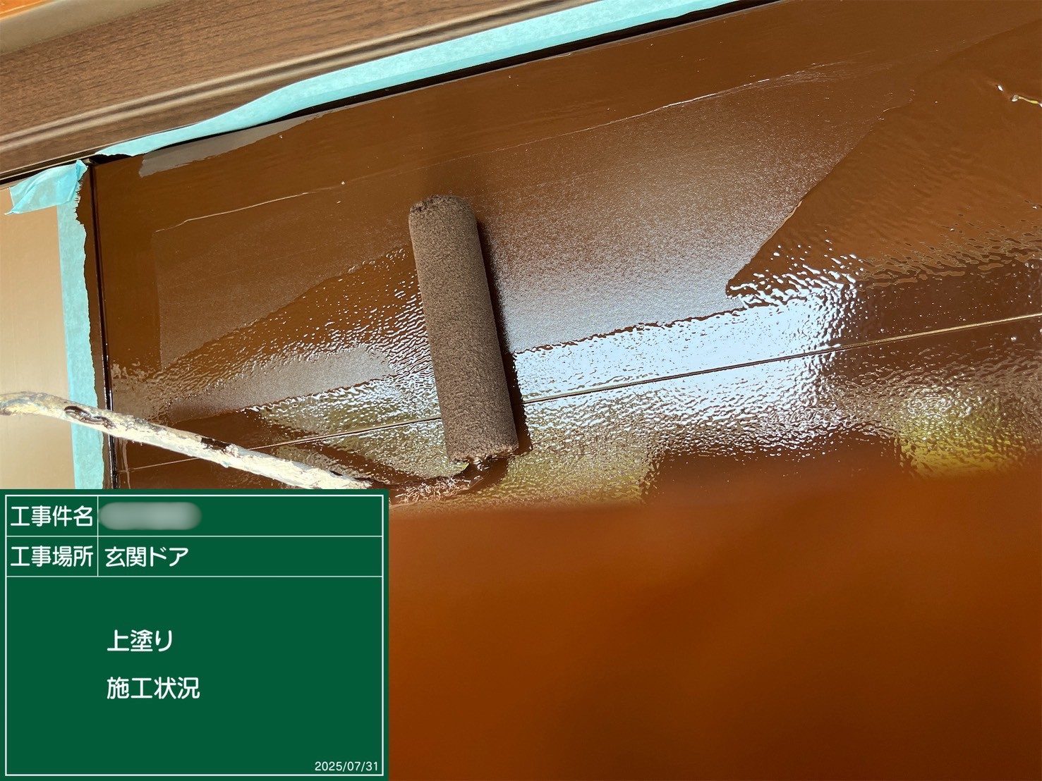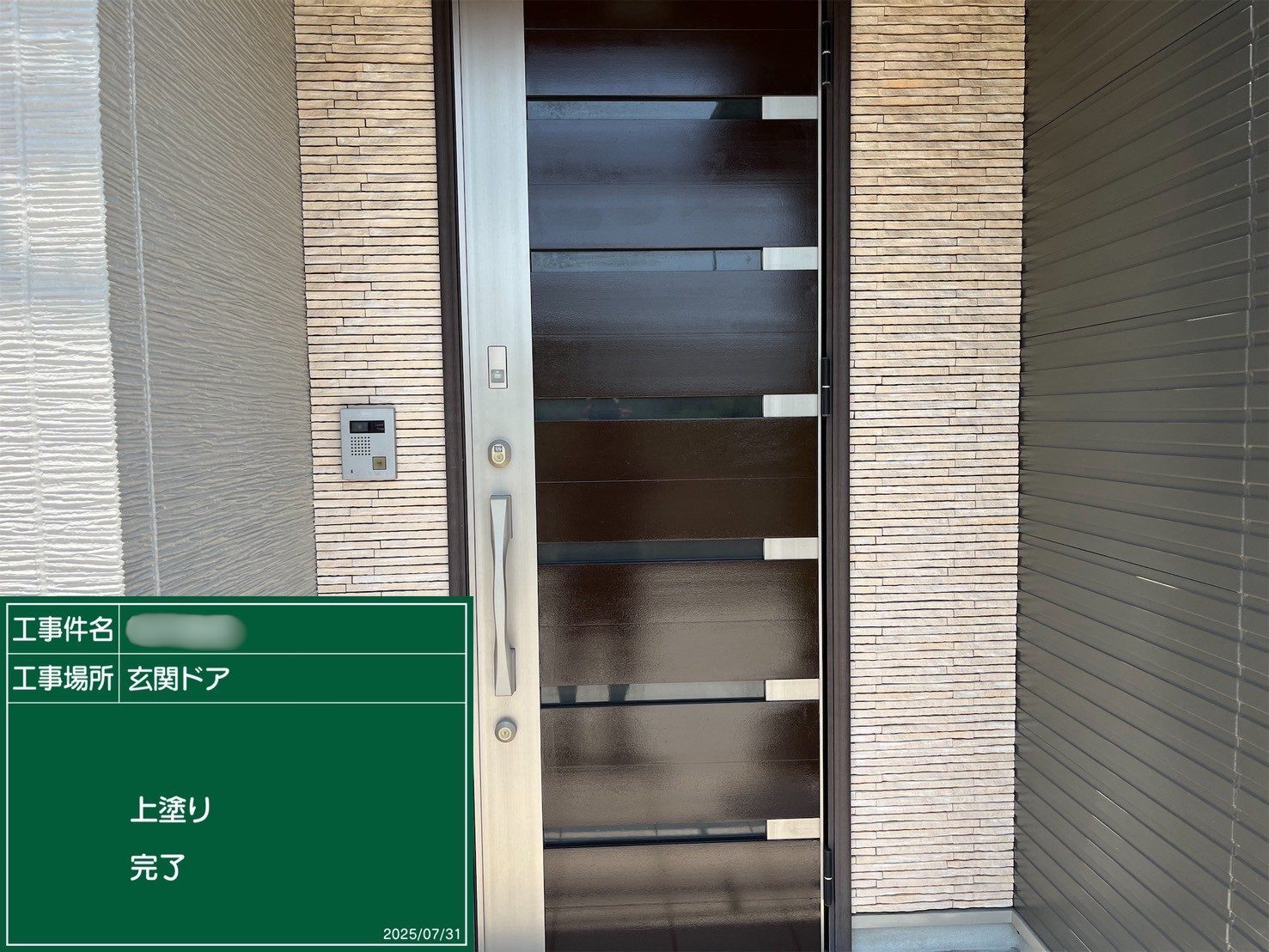 木製の玄関ドアは表面の劣化が進み、塗装が剥がれている部分もありましたが、塗装することでつやと風合いを取り戻しました。家の“顔”である玄関が美しく生まれ変わり、外観全体の印象もぐっと引き締まっています。