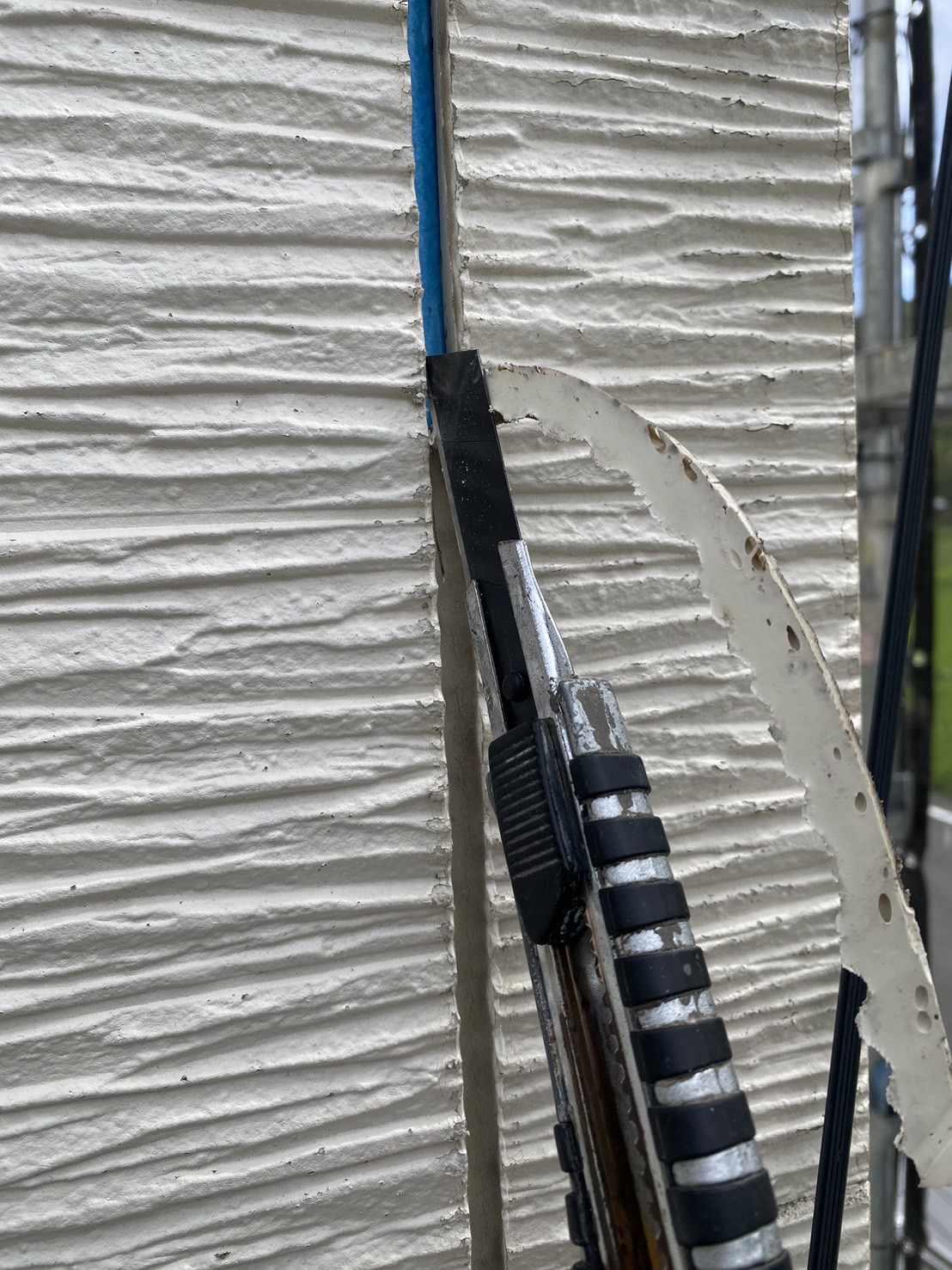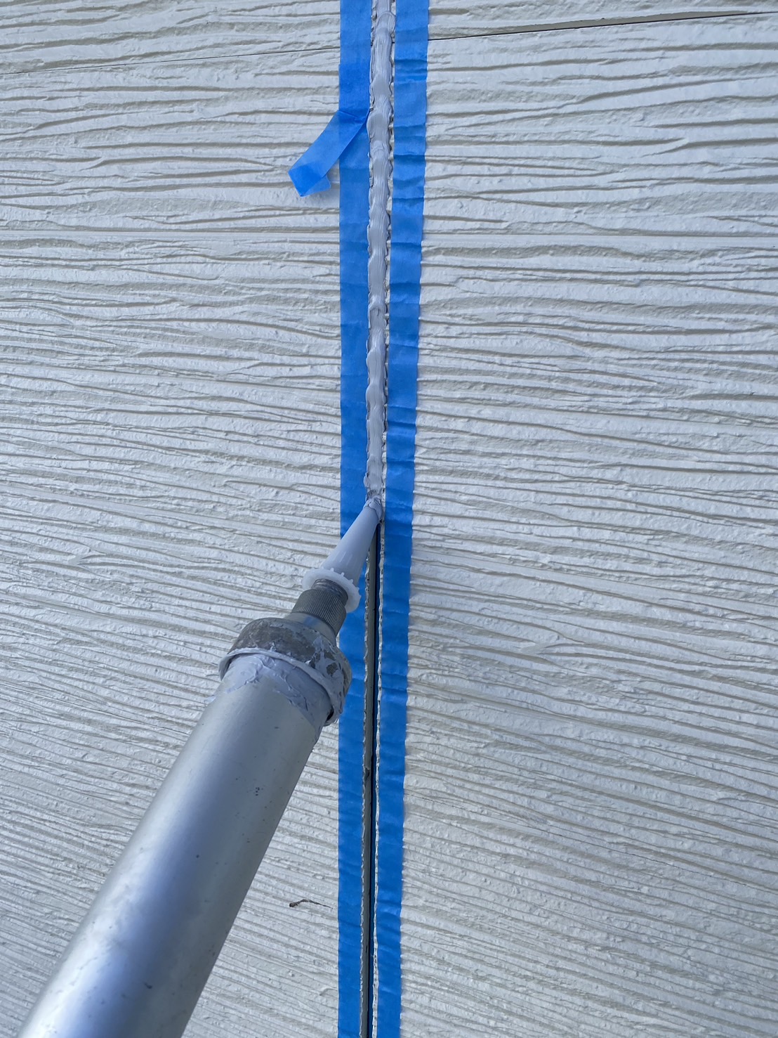 外壁の隙間やひび割れを補修し、水の侵入を防ぐ大切な工程です。