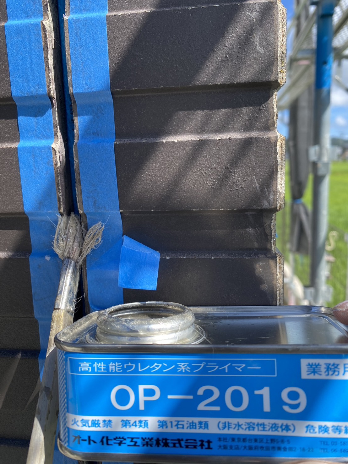 新しいコーキングの密着を高め、きれいに仕上げる準備です。