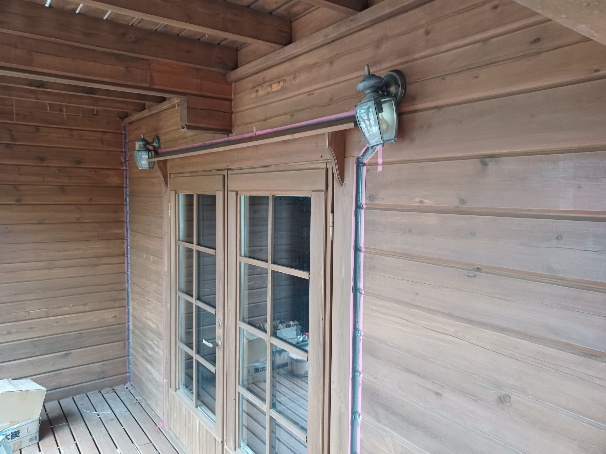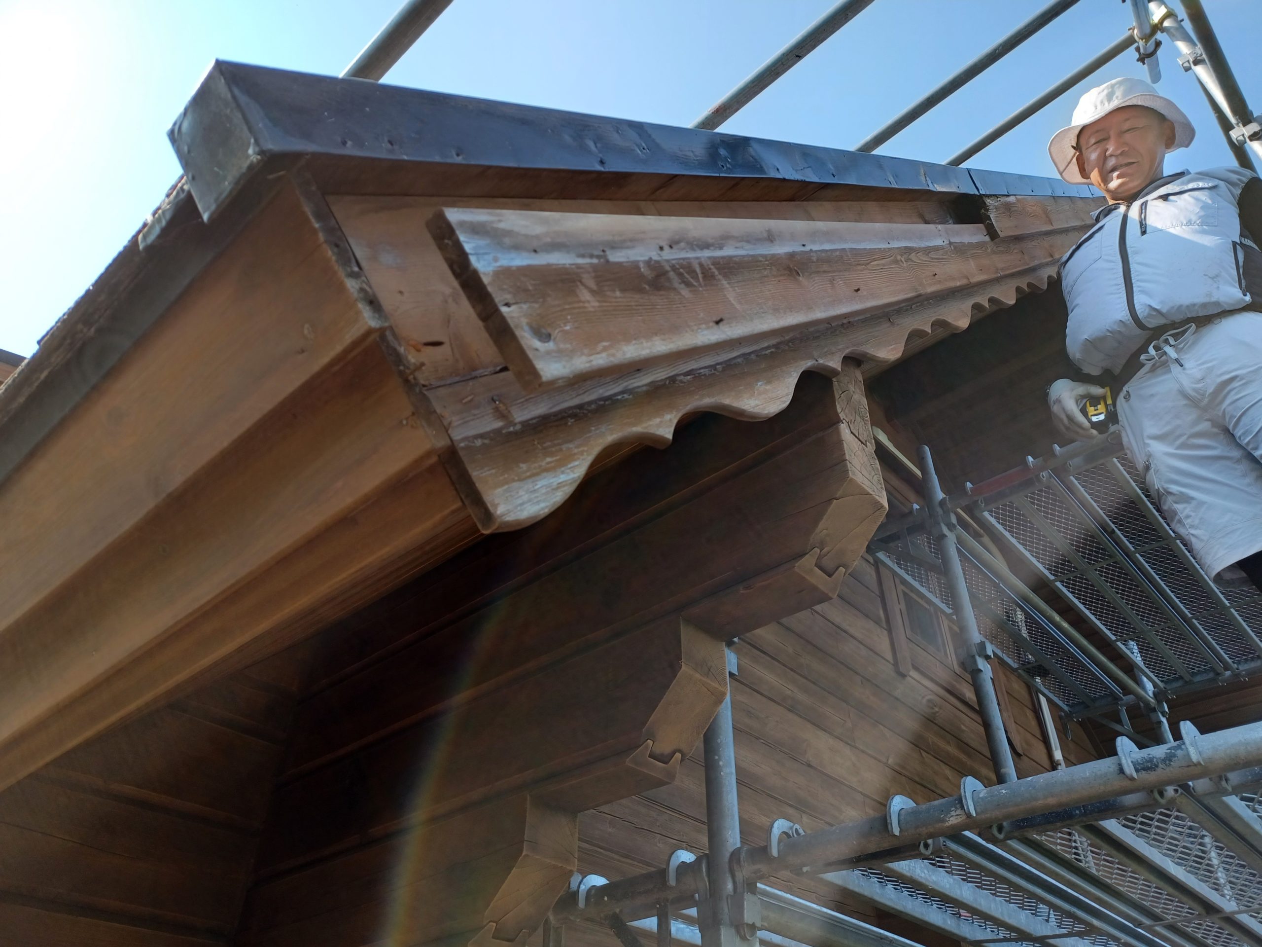 紫外線や雨風の影響で色あせや木の乾燥が見られる状態でした。