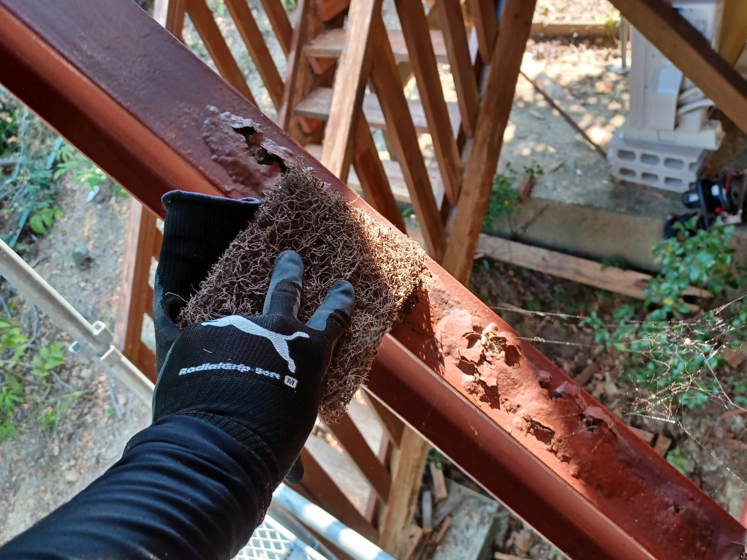 古い塗膜やサビを落とし、塗料がしっかり密着する状態にします。