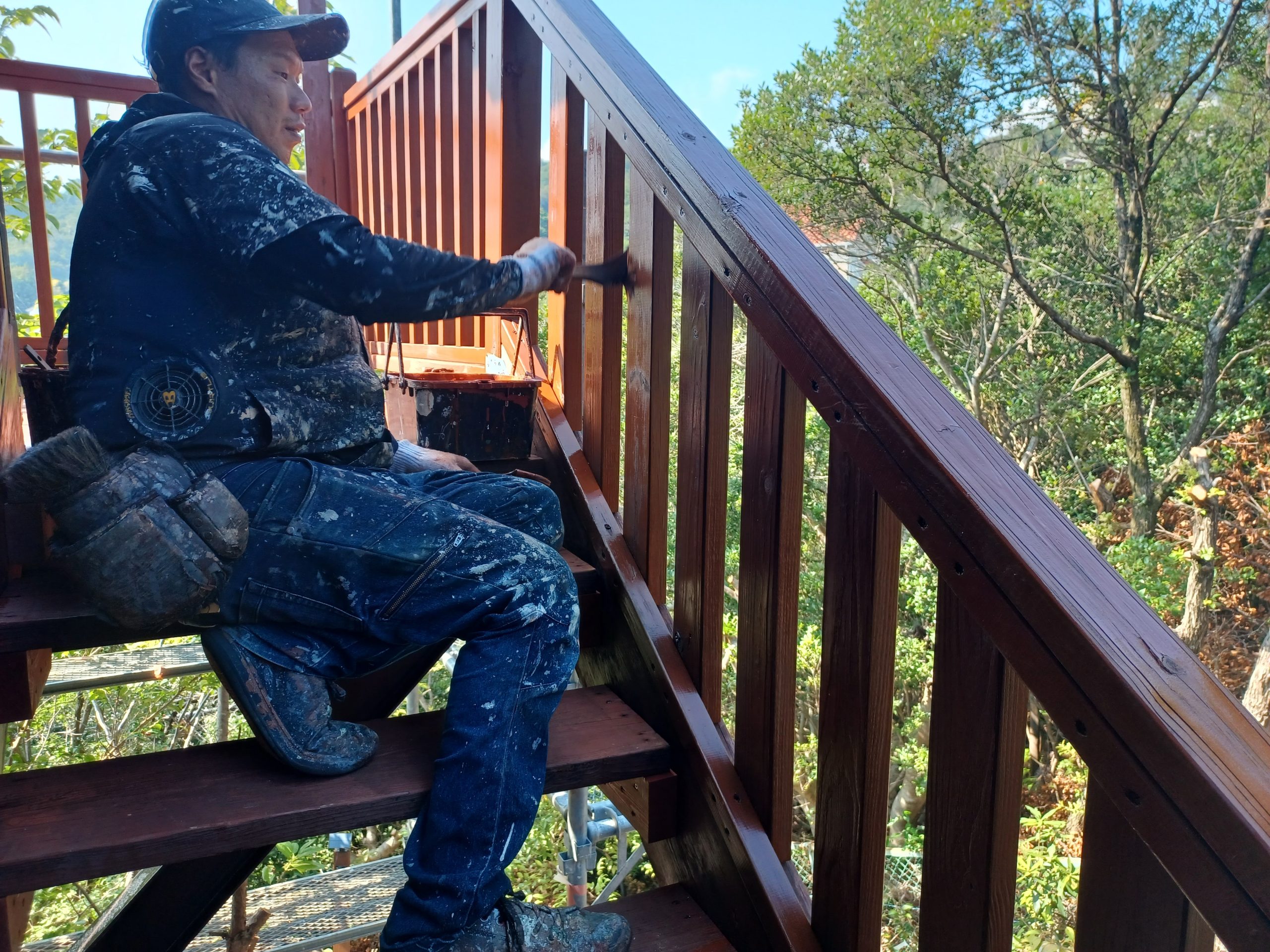 塗装により木にツヤと保護効果が戻り、美しくよみがえりました。