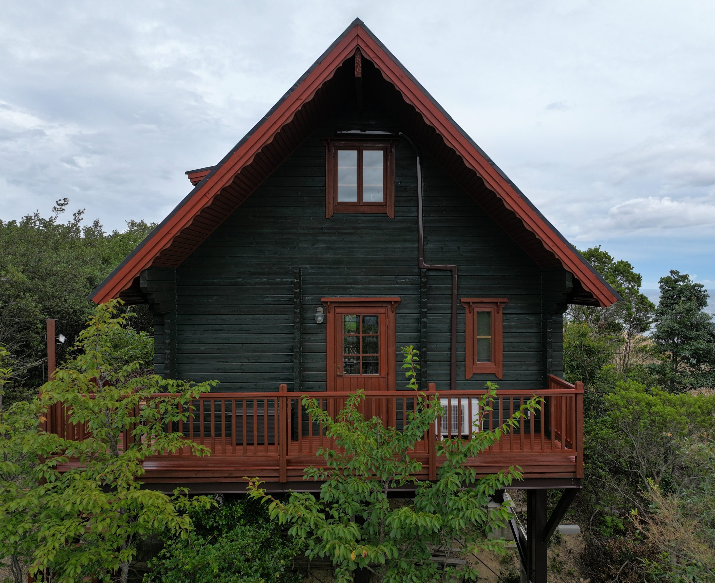 ログハウスの魅力を活かすため、ツートンカラーをご提案。